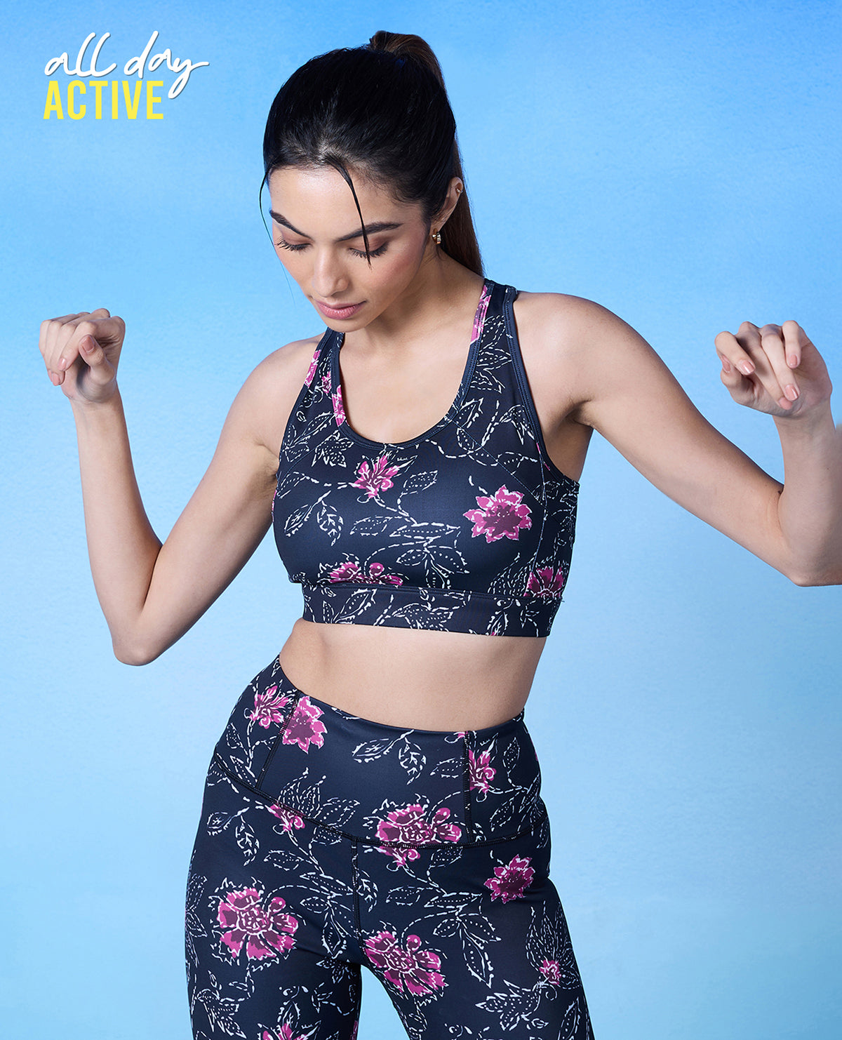 | Nykd All Day On-Trend Sports Bra With Keyhole Back - NYK082 - Batik Black Print