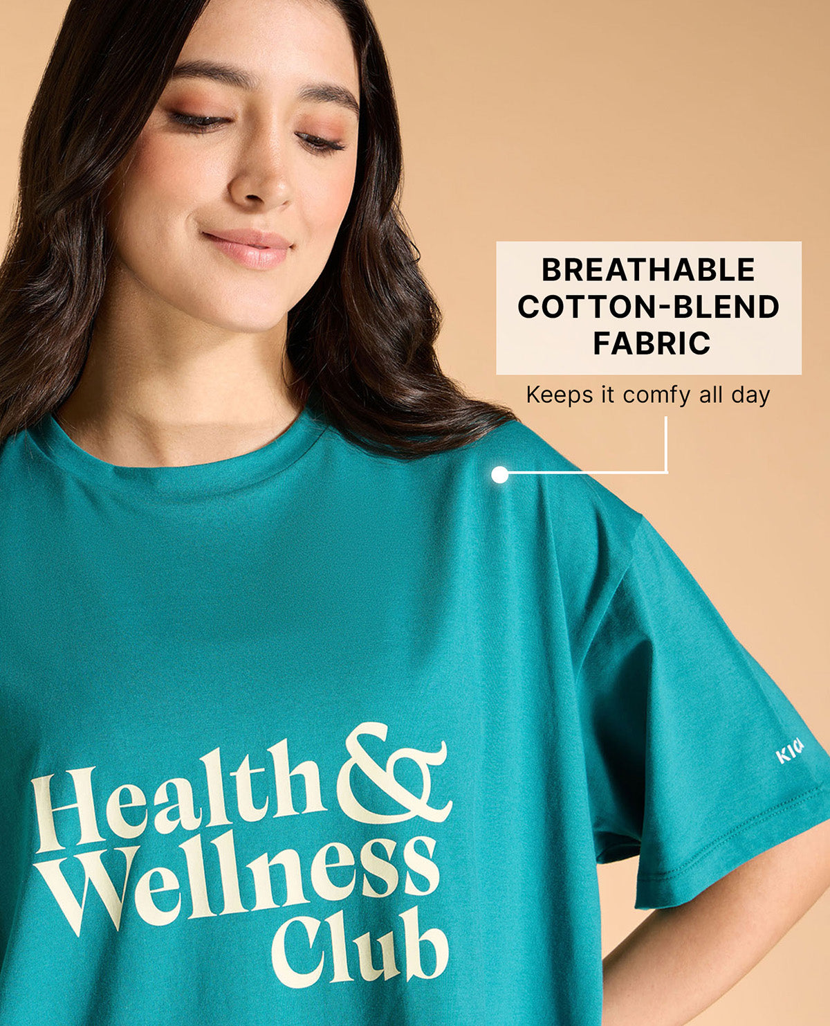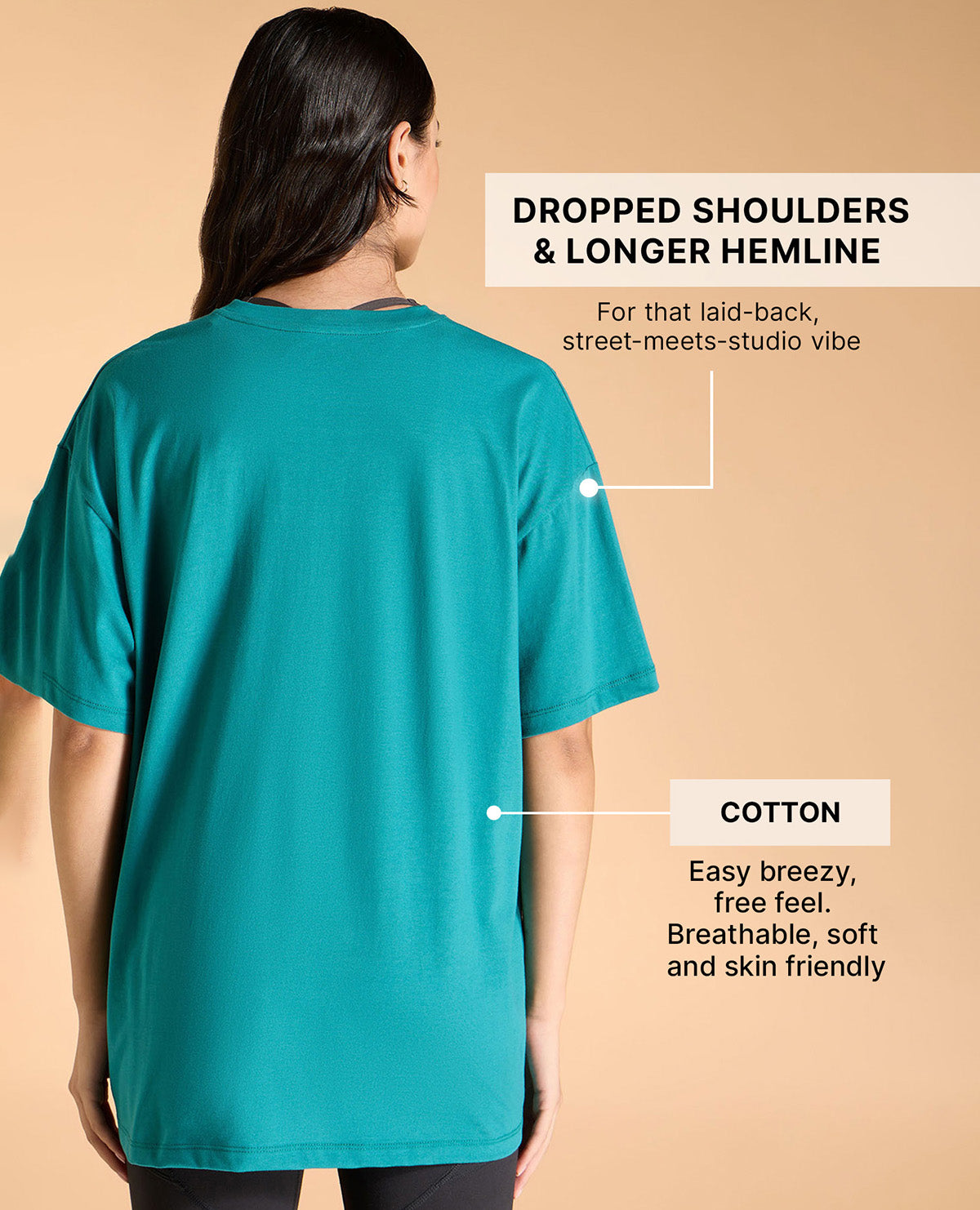 The Cotton Oversized T-Shirt - The Ultimate Wardrobe Staple You Need The Cotton Oversized tee is your everyday staple for movement and ease. Designed in 100% premium cotton with an extra-soft finish, this oversized t-shirt for women is breathable, lightweight, and designed for all-day comfort. Whether you’re lounging, layering, or out on the move, it’s the effortless throw-on you’ll reach for again and again. Why You’ll Love It: - Relaxed Oversized Fit: Keeps you airy, unrestricted, and comfortable all day. - Hip-Covering Length: Offers a flattering drape and extra coverage. - Soft Cotton Fabric: Feels as good as it looks, perfect for everyday wear. - Effortless Style: Round neck with a subtle graphic print for a casual-cool vibe. - Style Your Way : Works effortlessly with leggings, jeans, or shorts. Pair It With: Complete your look with high-performance Booty shorts, Leggings or Flare pants from the KICASKN™ collection - engineered to move with you from studio to street.
