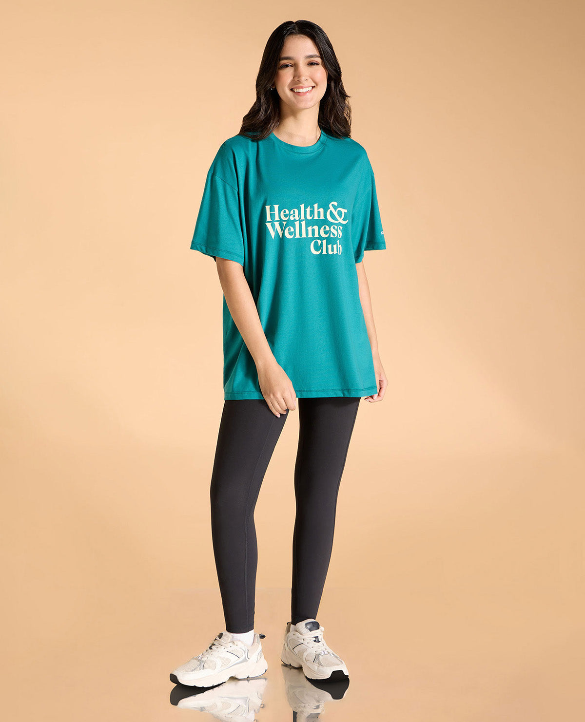 Kica Cotton Oversized Printed Graphic T Shirt Teal