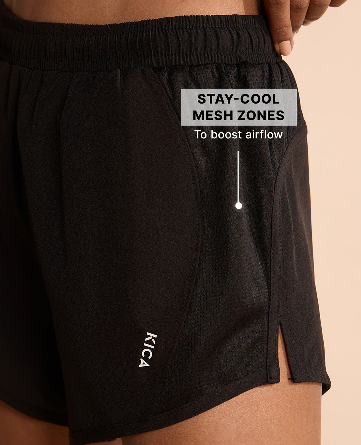 Kica Running Shorts with Breathe Easy Mesh Panels and Inner brief for coverage Black