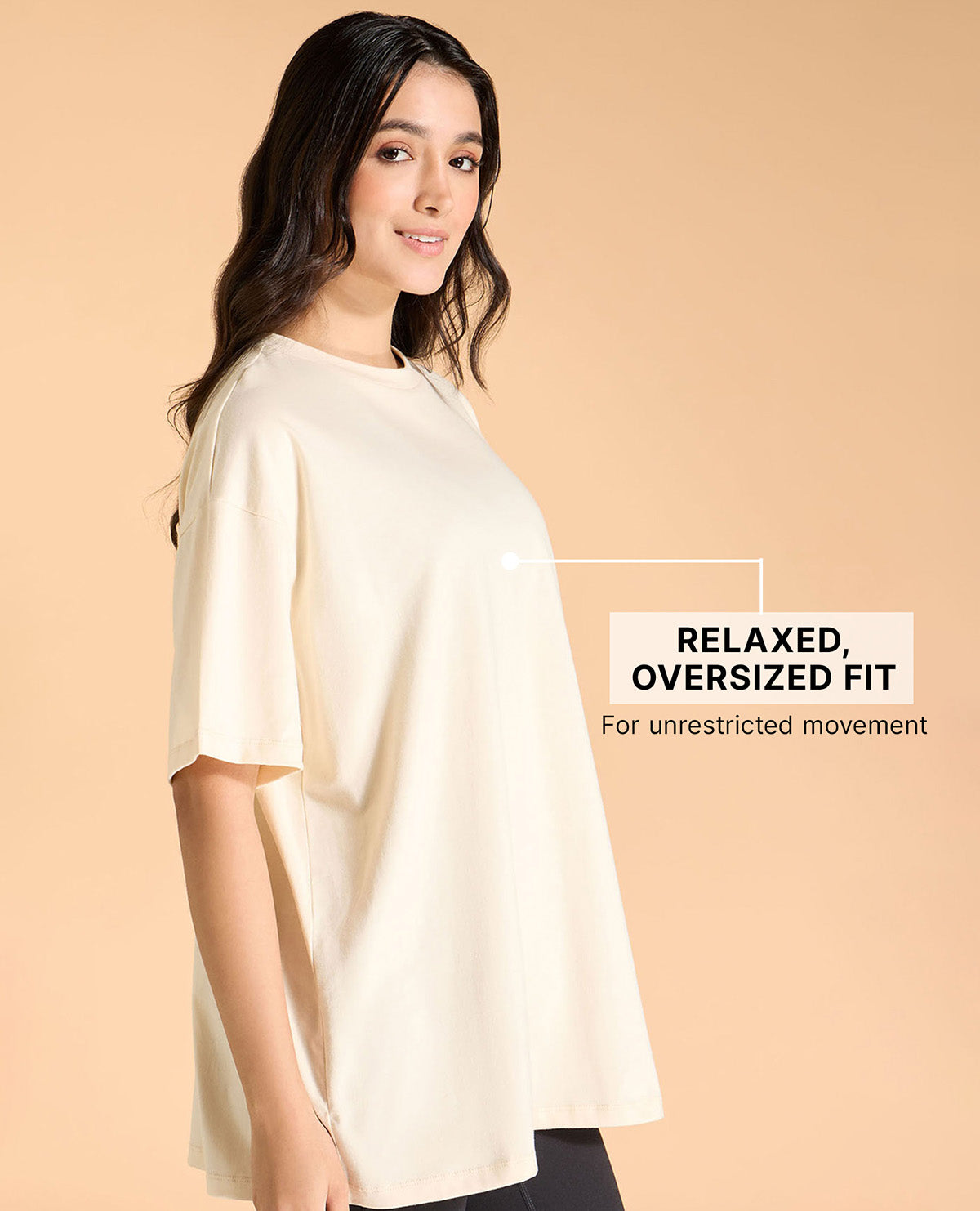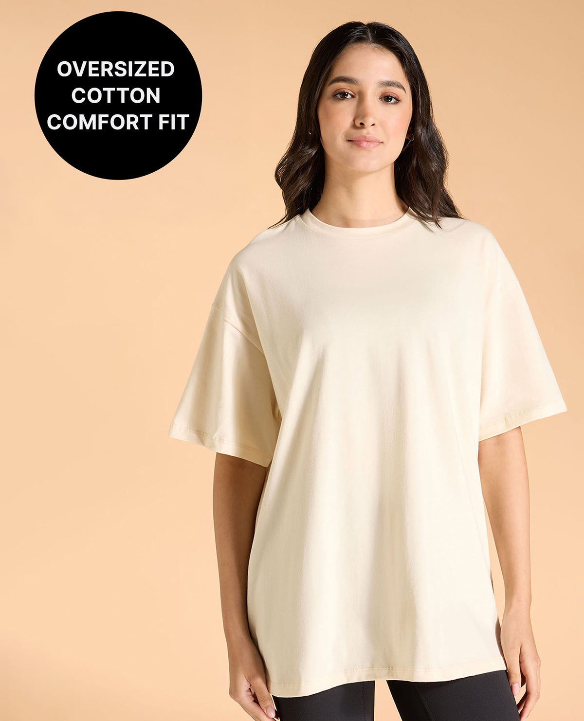 The Cotton Oversized tee is your everyday staple for movement and ease. Designed in 100% premium cotton with an extra-soft finish, this oversized t-shirt for women is breathable, lightweight, and designed for all-day comfort. Whether you’re lounging, layering, or out on the move, it’s the effortless throw-on you’ll reach for again and again.