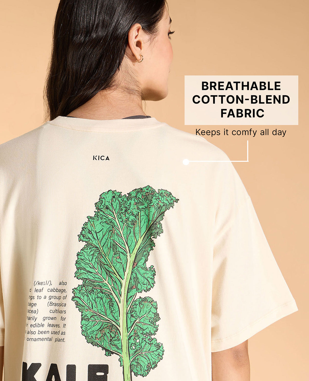 Kica Cotton Oversized Printed Graphic T Shirt Pearl