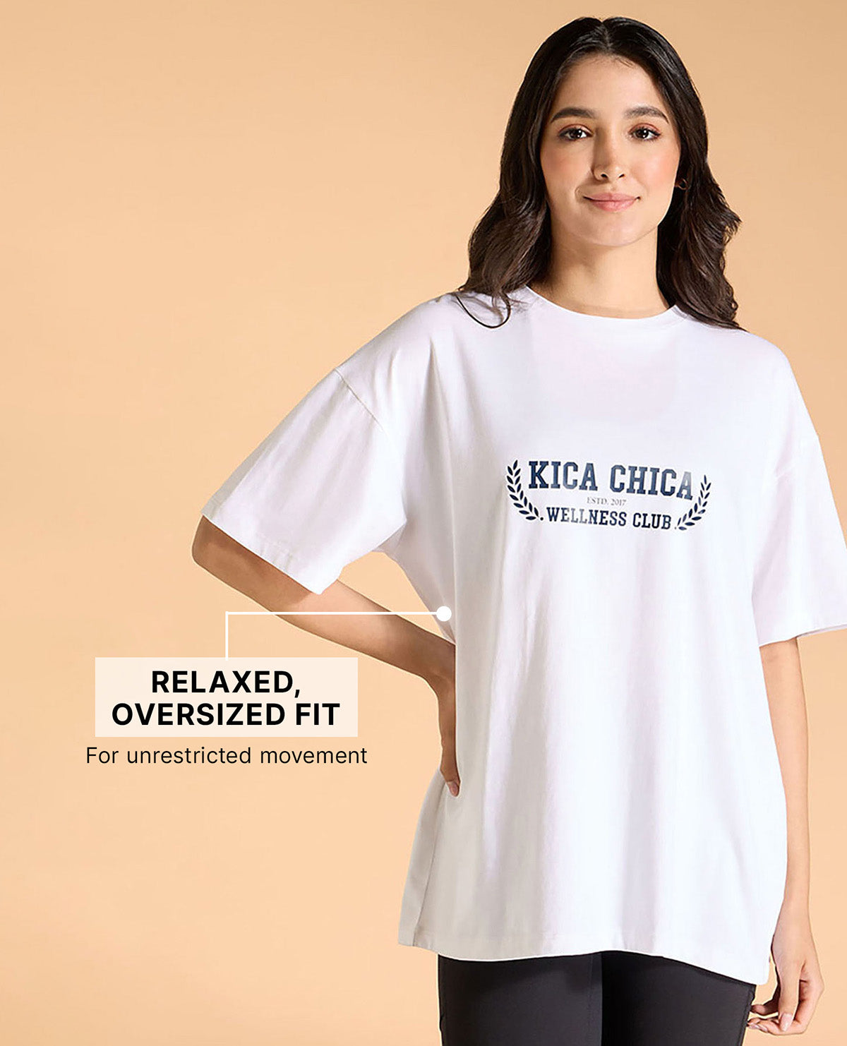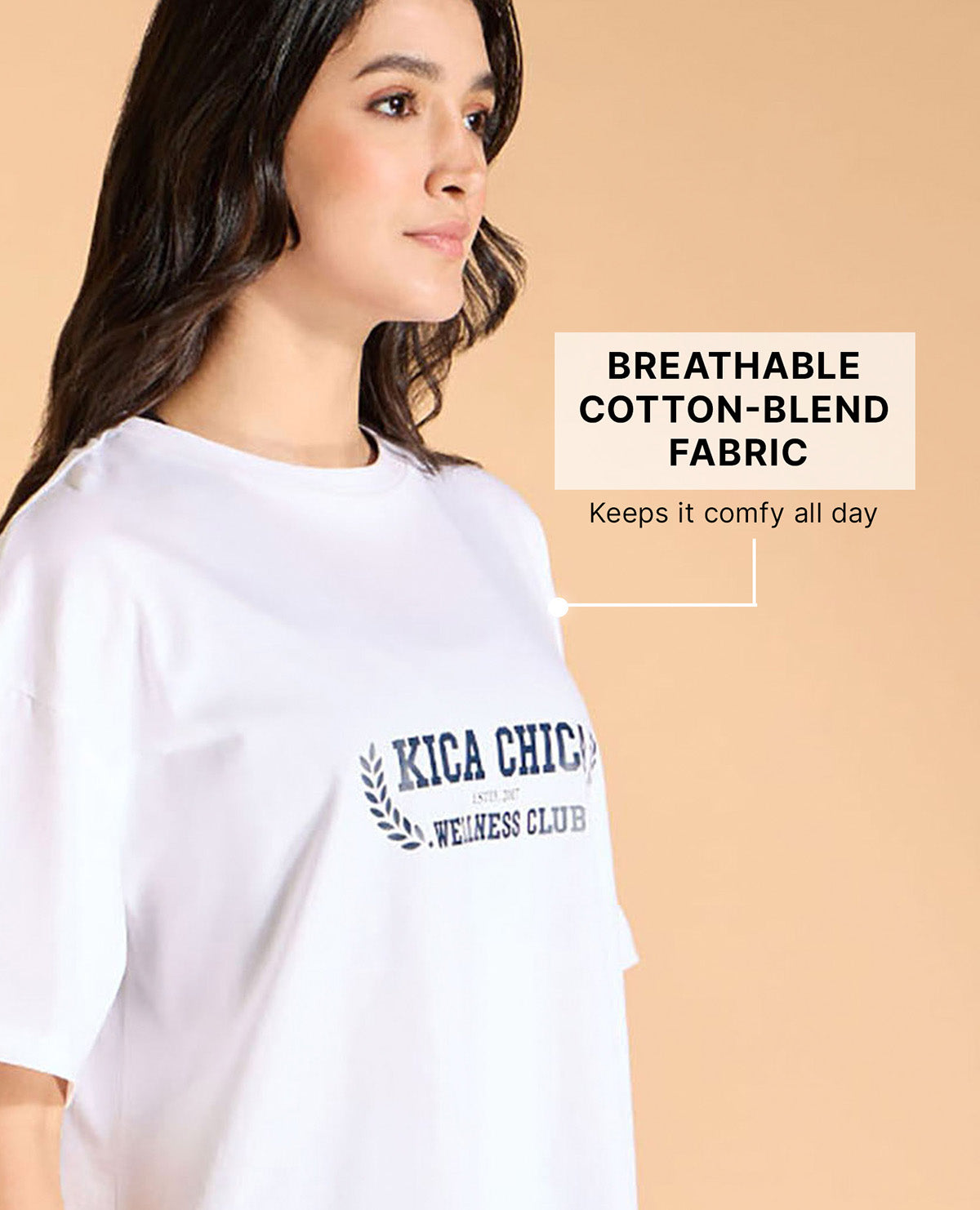 Kica Cotton Oversized Printed Graphic T Shirt White