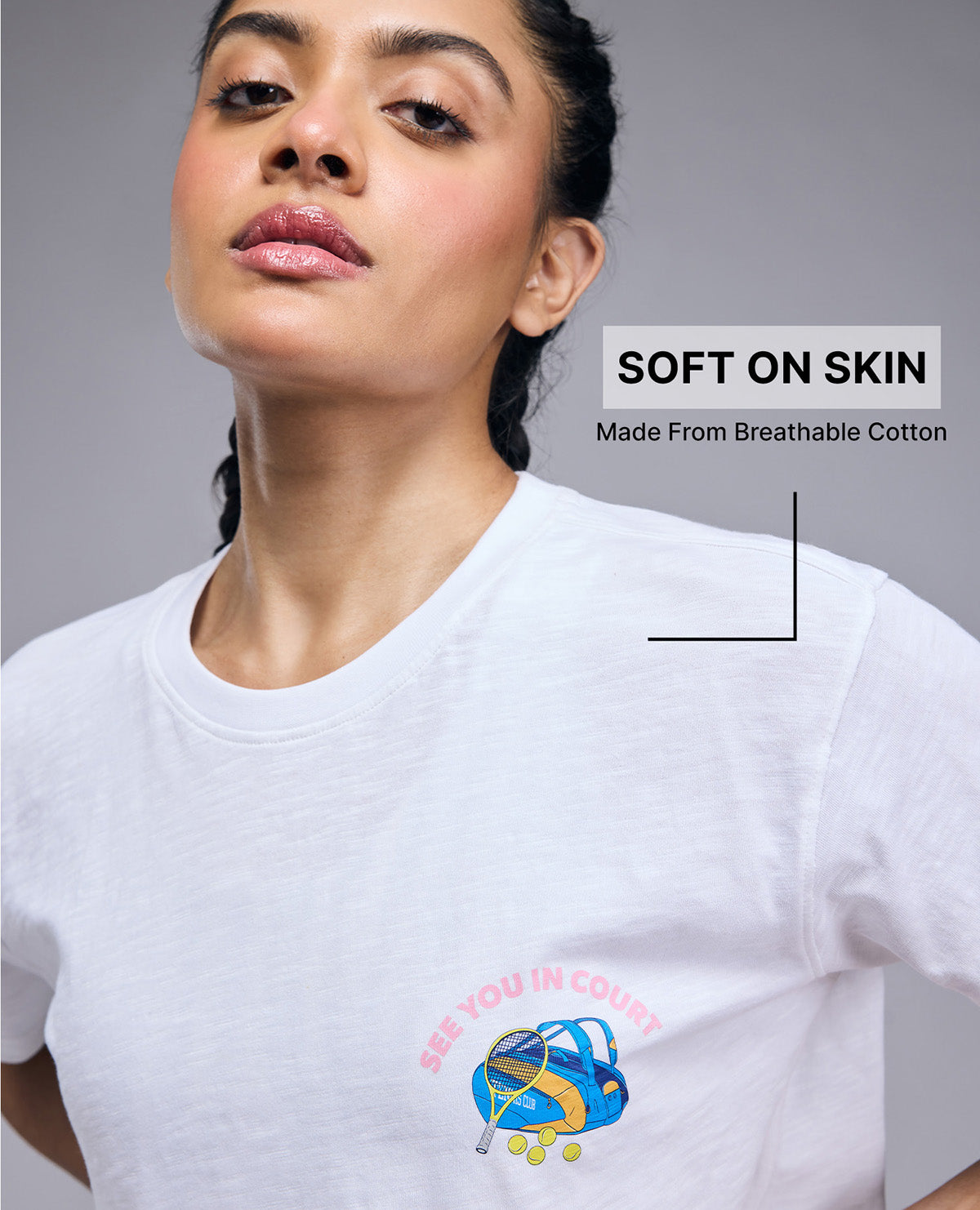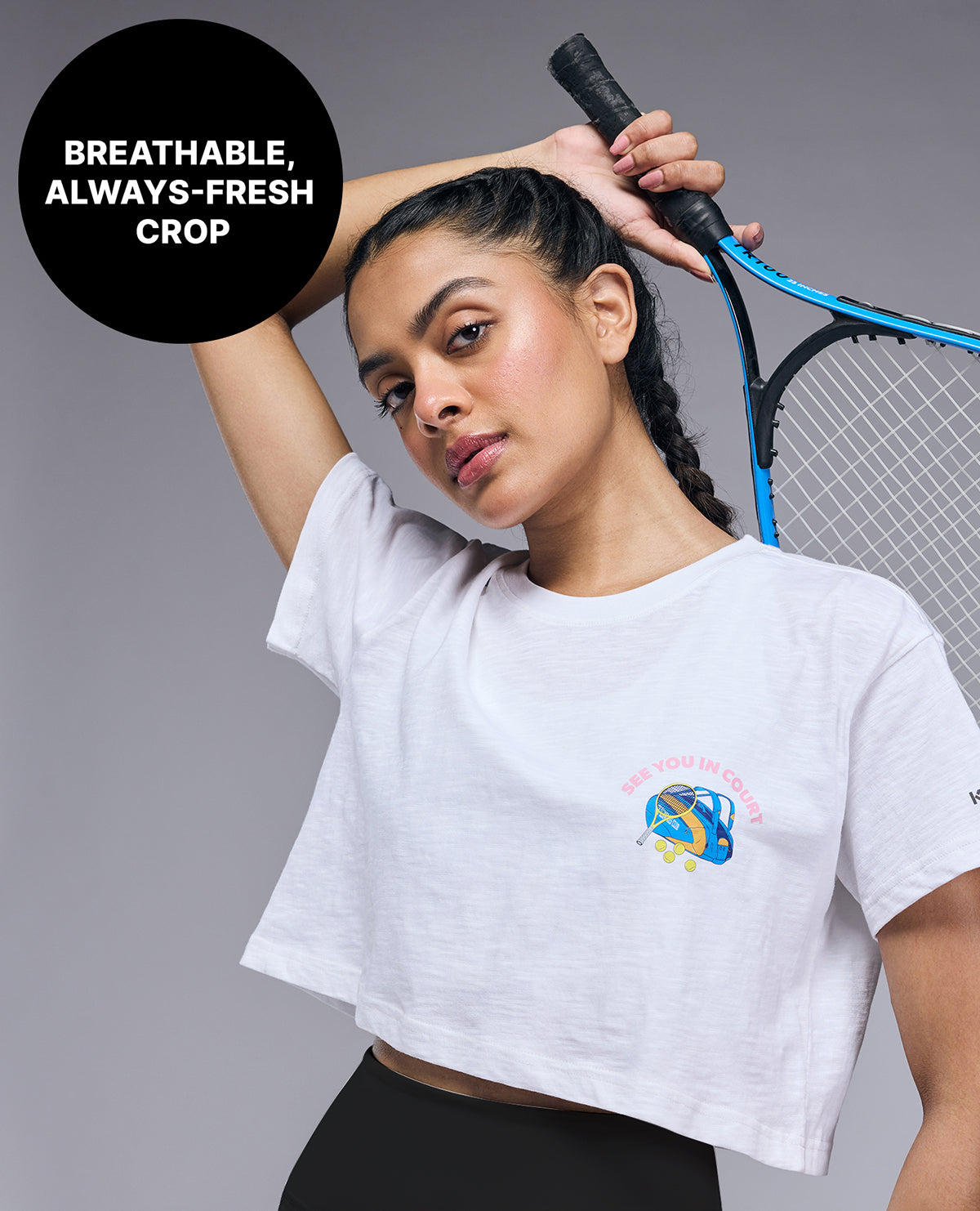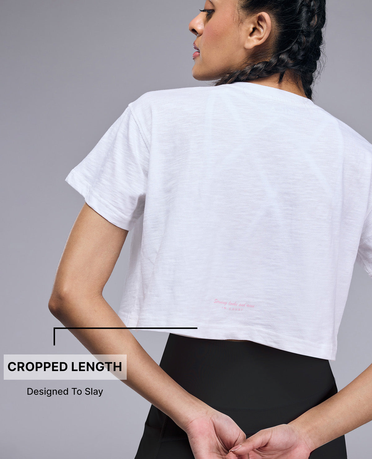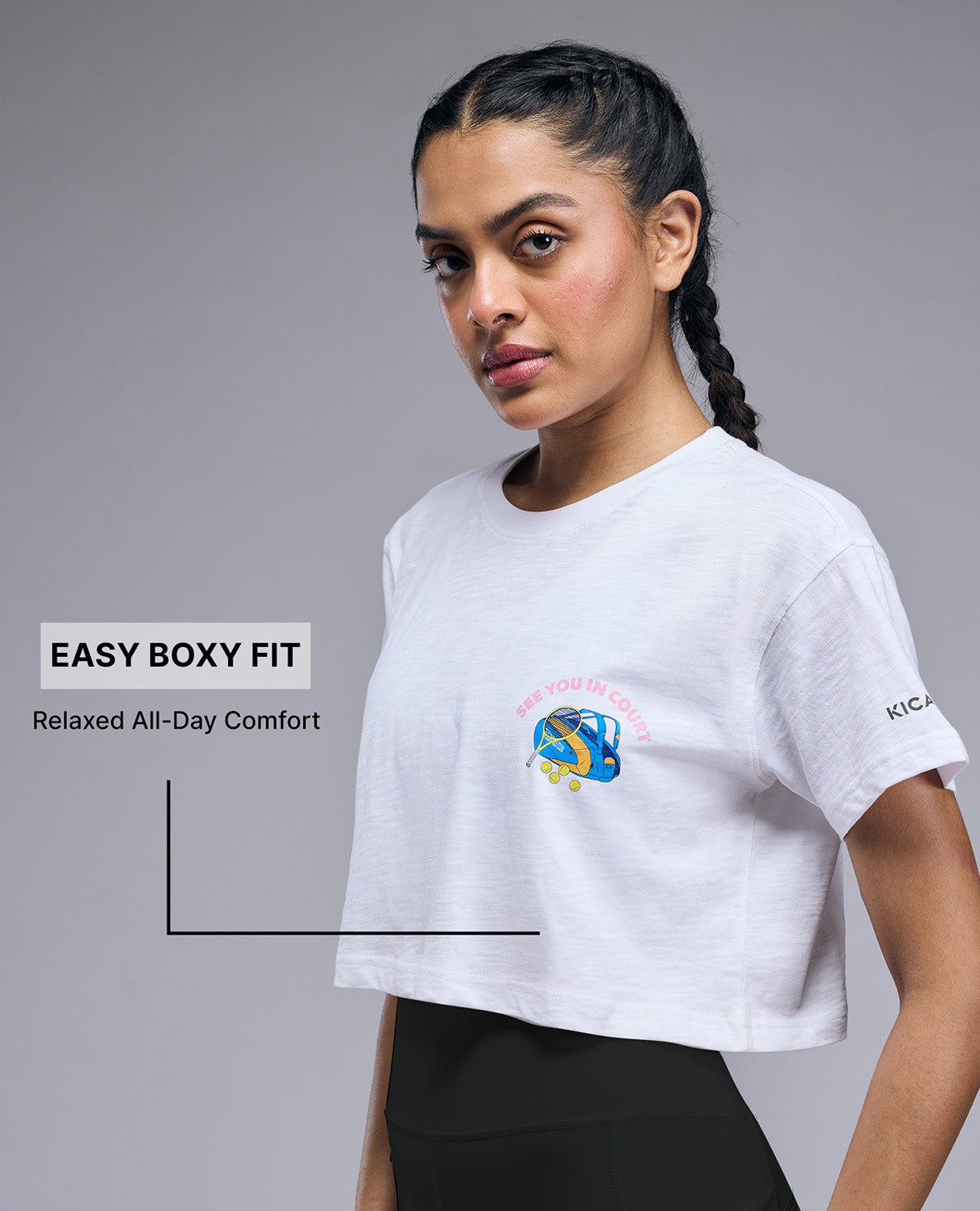 Relaxed Fit Cotton Crop Top For Women- KIC006 White