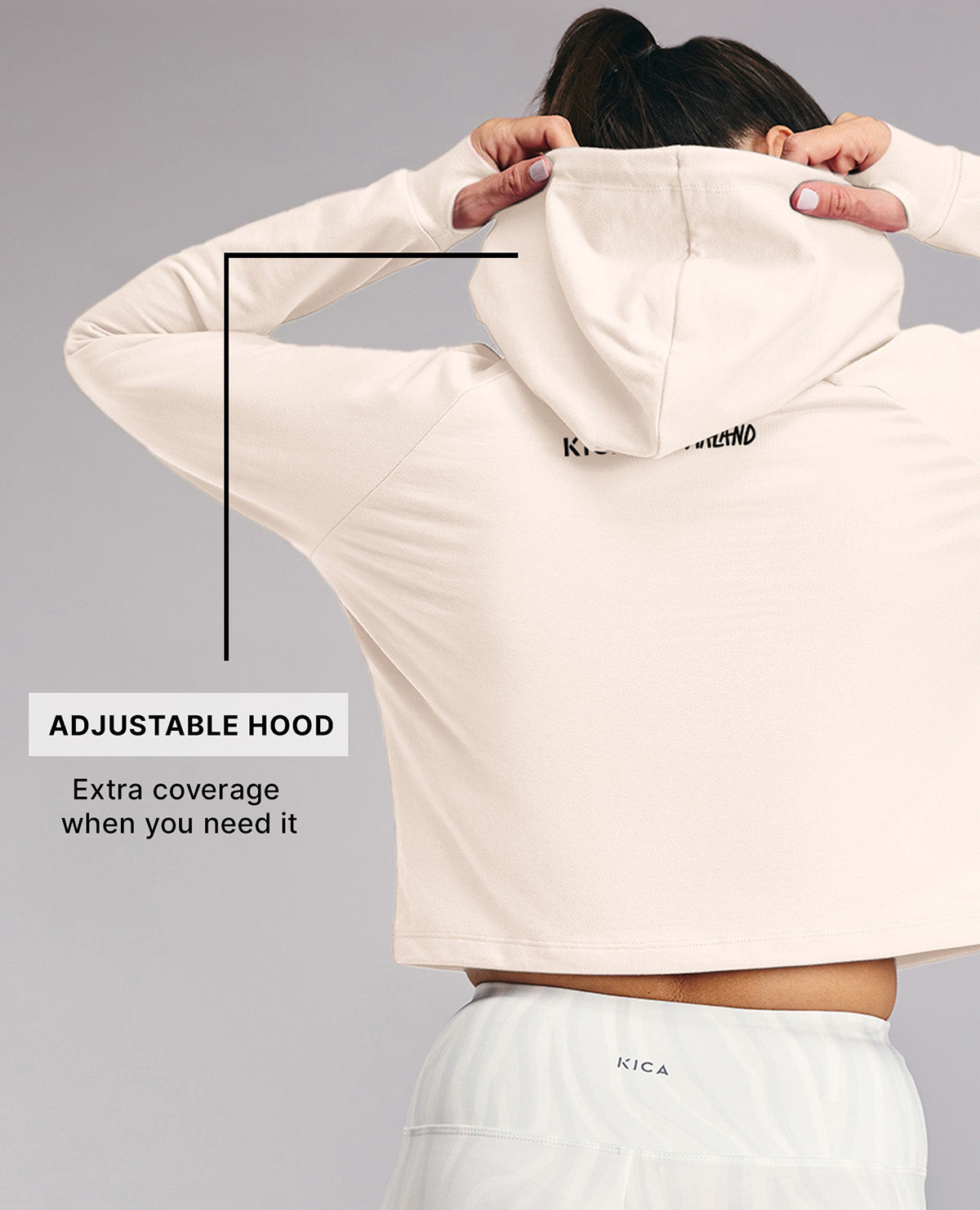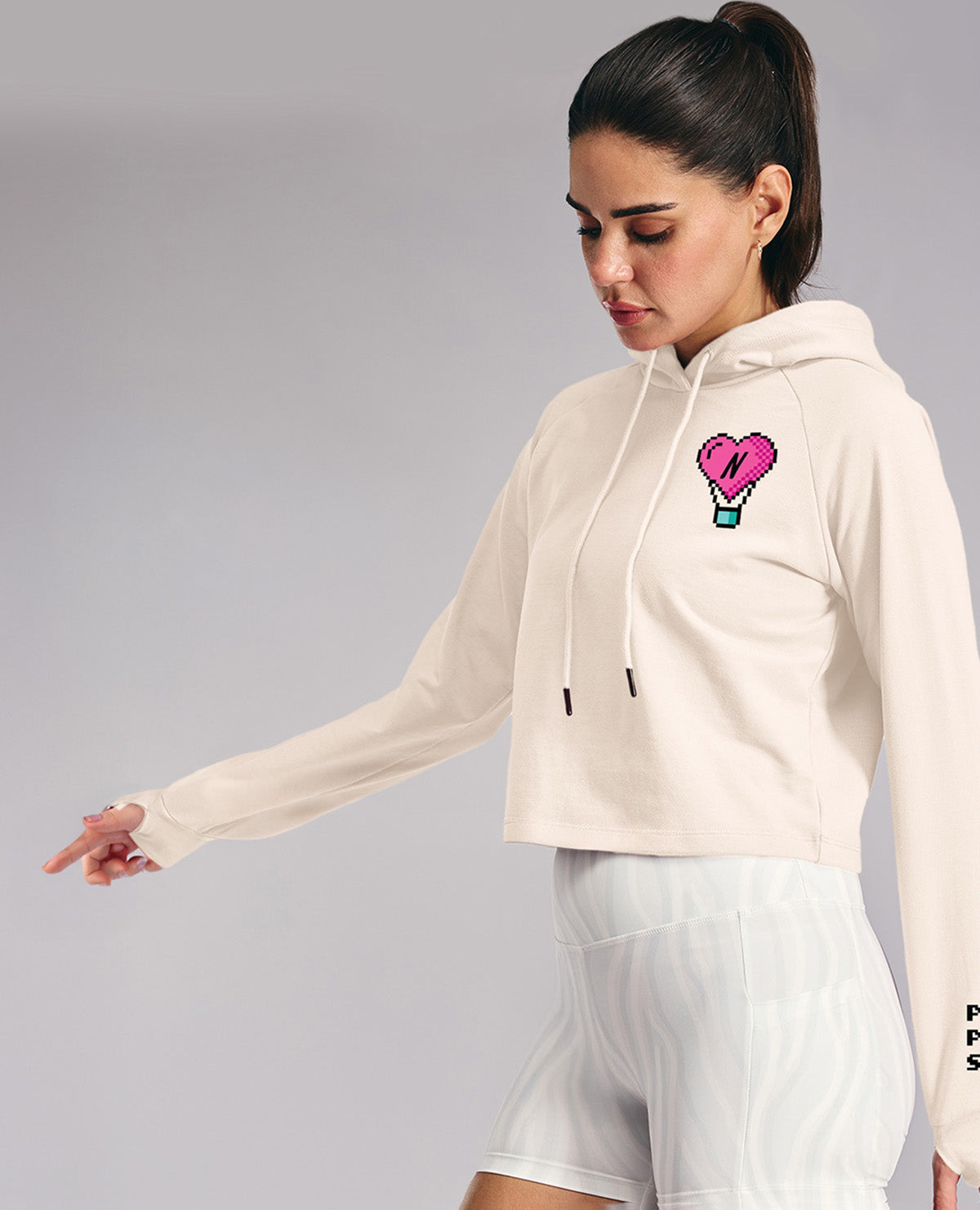 Kica KIC604 Off White Cropped Hoodie - In Cotton Terry Fabric