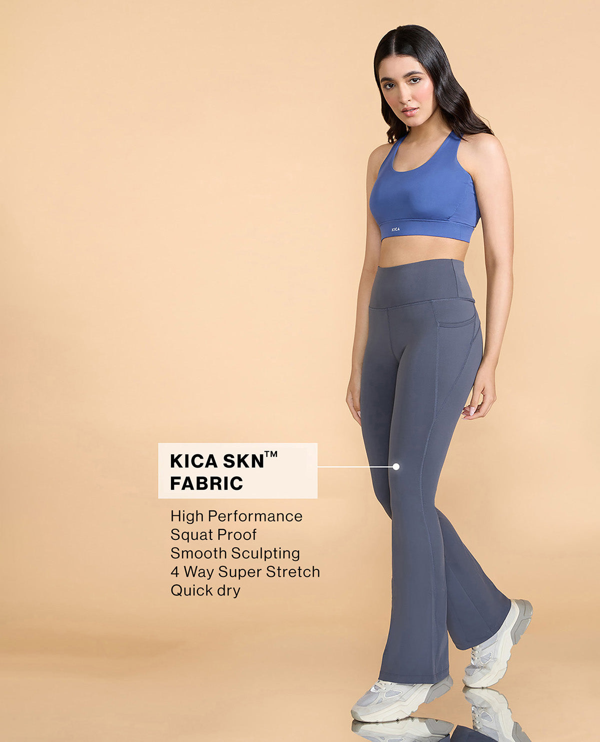 A: Kica Active's Flare Pants stand out with their perfect fit, bum sculpting support, squat-proof design, and versatility. These pants are carefully crafted to provide a flattering silhouette, enhanced support for your bum, confidence during workouts, and the ability to transition seamlessly from studio sessions to various occasions.