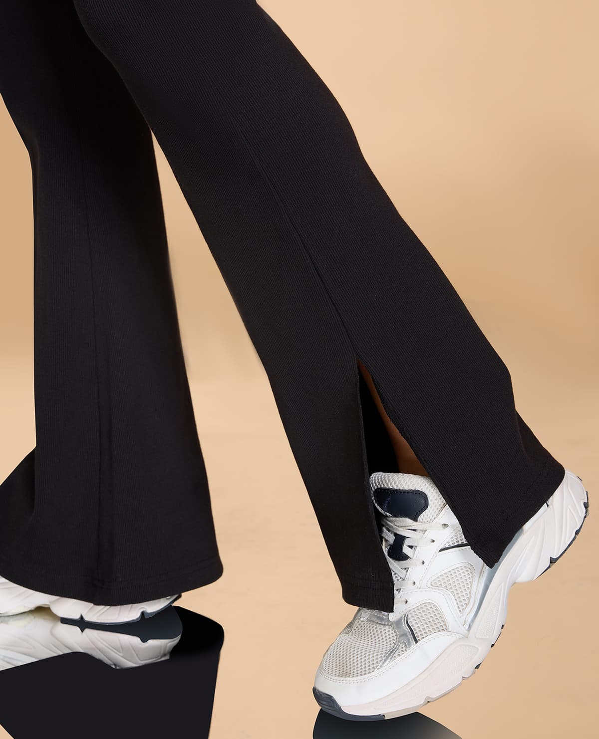 With a ribbed cotton fabric, these Flare Pants are soft, seamless, and extra stretchable.