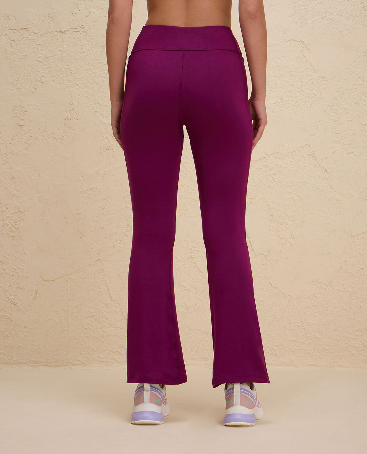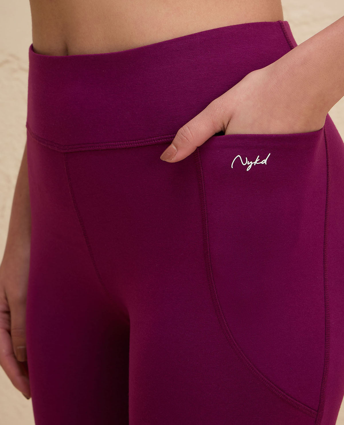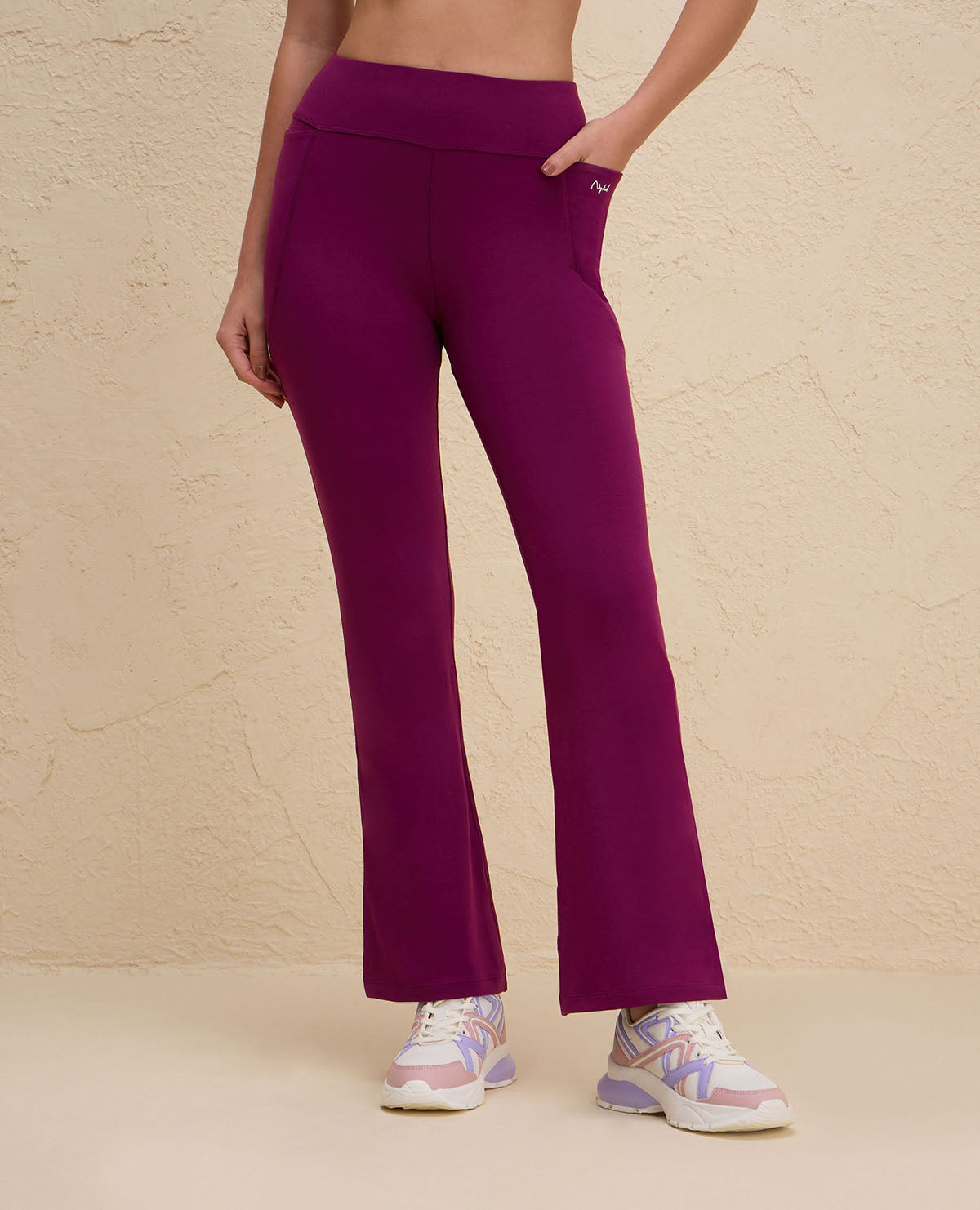 Nykd By Nykaa Iconic Cotton Flare Leggings with Pockets-NYAT503-Wine