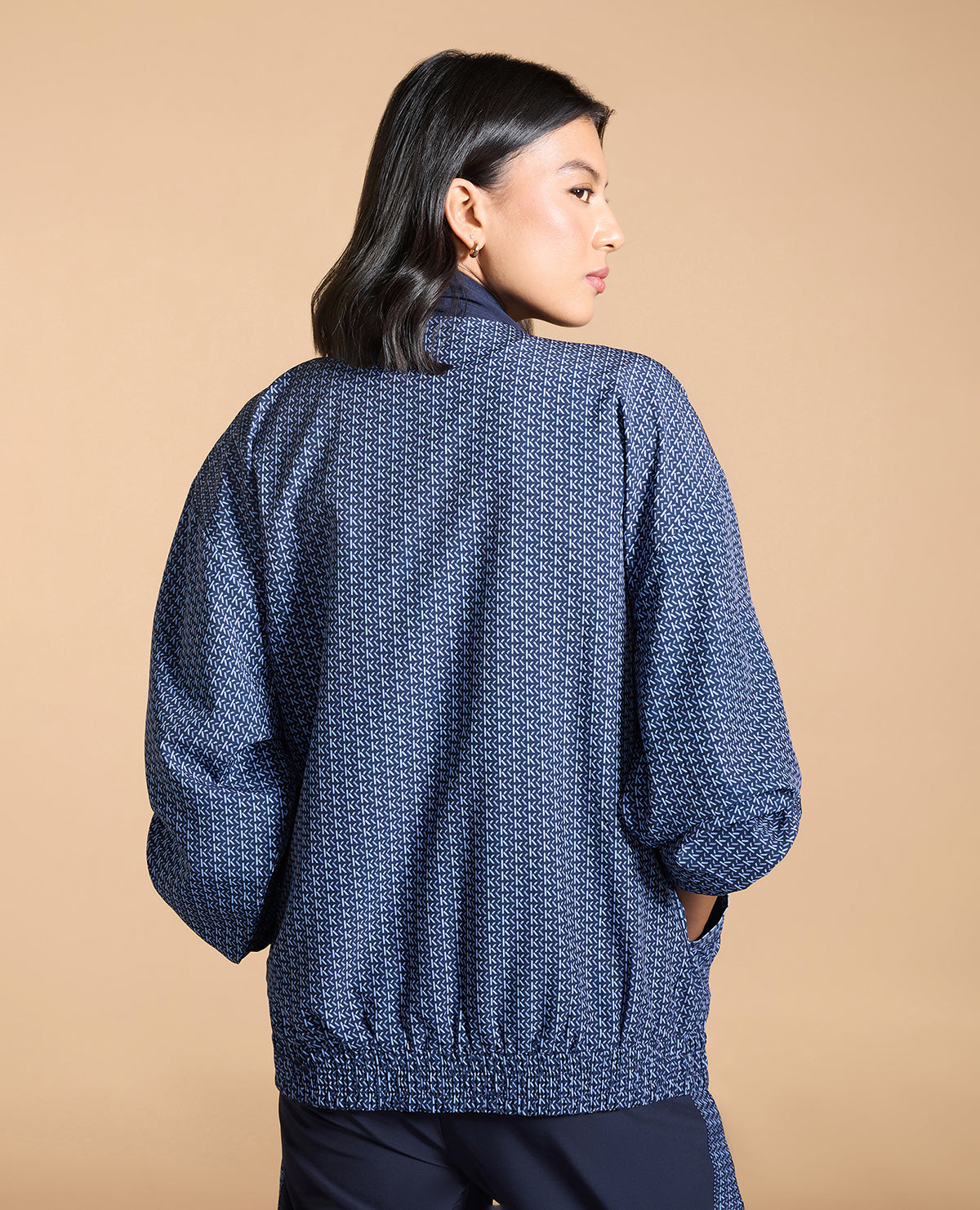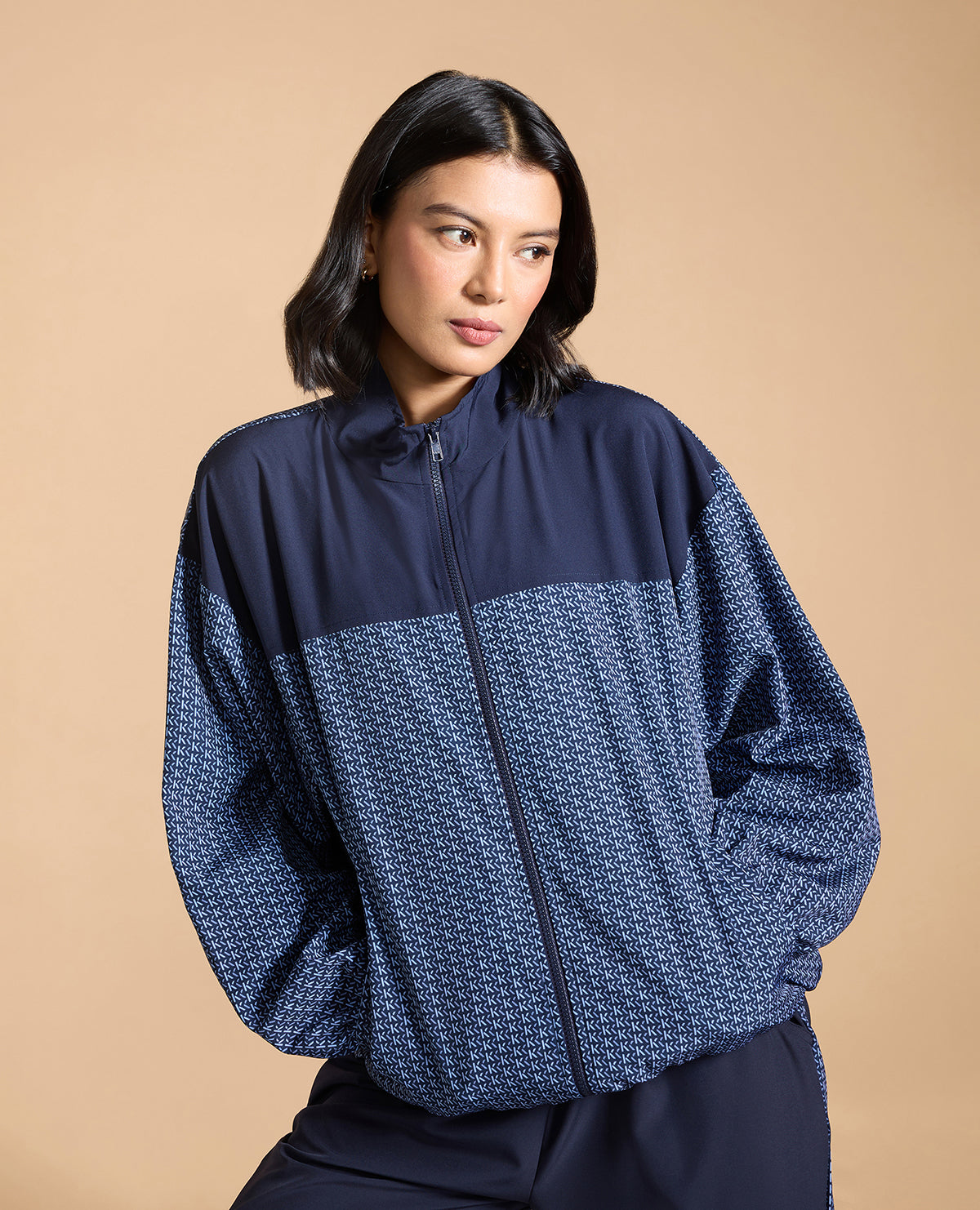 An Oversized Bomber Jacket is the only winter wardrobe essential you need. With an oversized fit, color-blocked panels, elasticated cuffs, and bottoms, this bomber is a charmer. The unique Kica print is gonna make you look runway-ready. Pair with our Printed Lightweight Tracks and make heads turn cause "Chica, you look fabulous!"