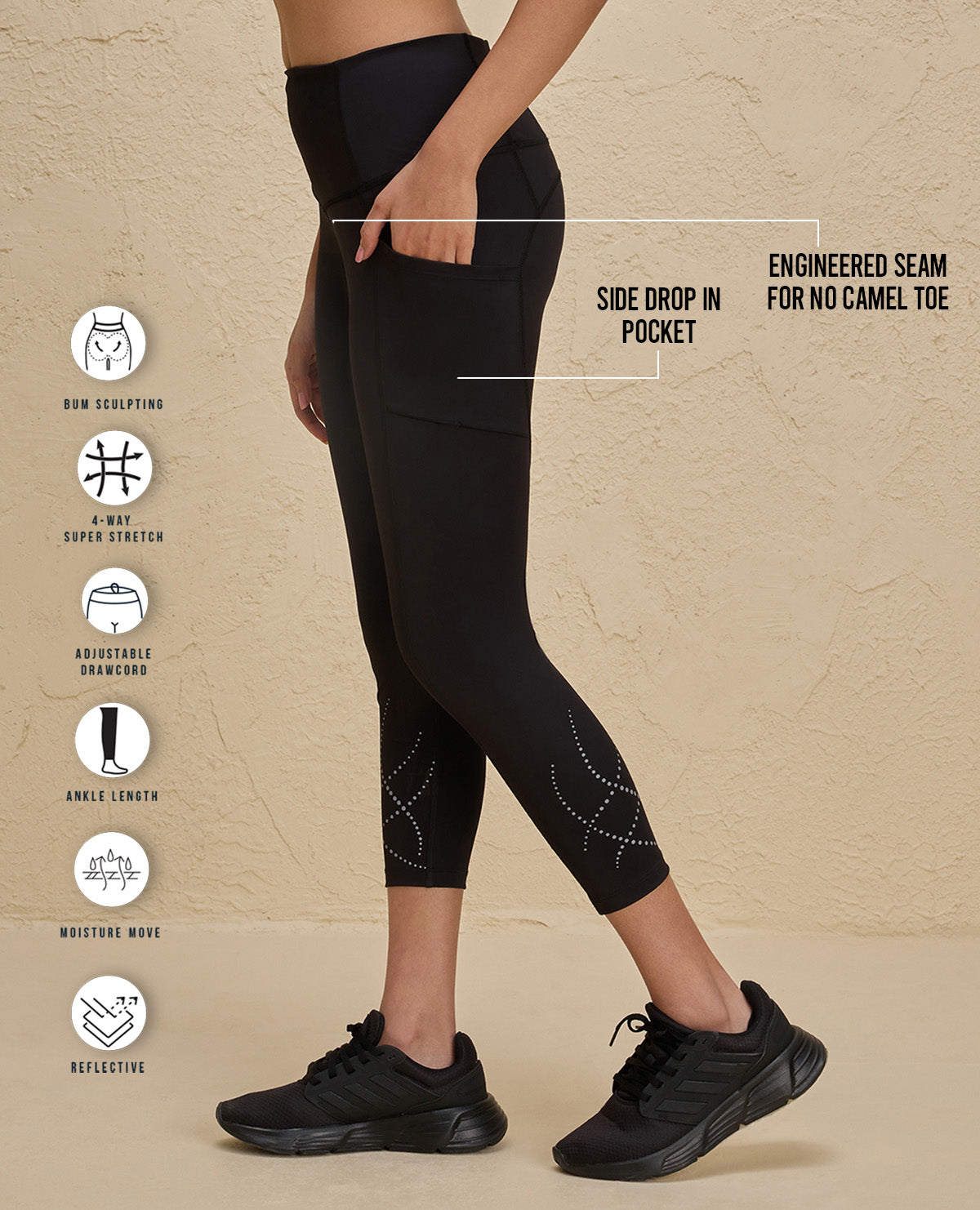 Get ready to crush your goals in style with our high-waist squat-proof leggings! With breathable NY-dry technology and anti-roll high waistband you'll stay comfortable during your workouts. Plus, side and back drop in pockets make it easy to carry your essentials like keys, cards, or your phone. And with front and back high vision reflective print, you'll stay visible during those early morning or late night runs. Let's run the world together ’????????? from dawn to dusk!