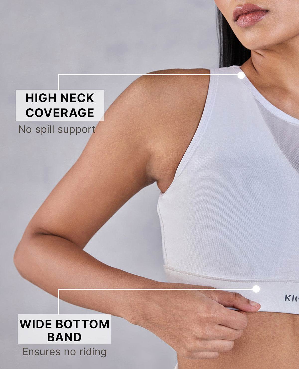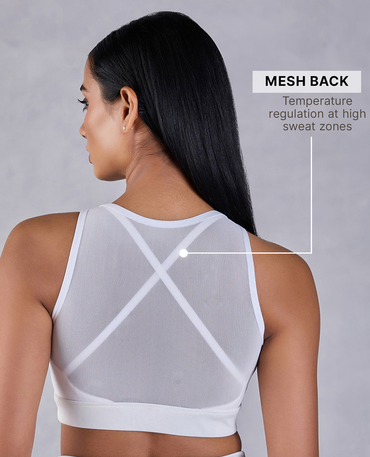 Kica Women High Impact & Full Coverage Mesh Sports Bra White