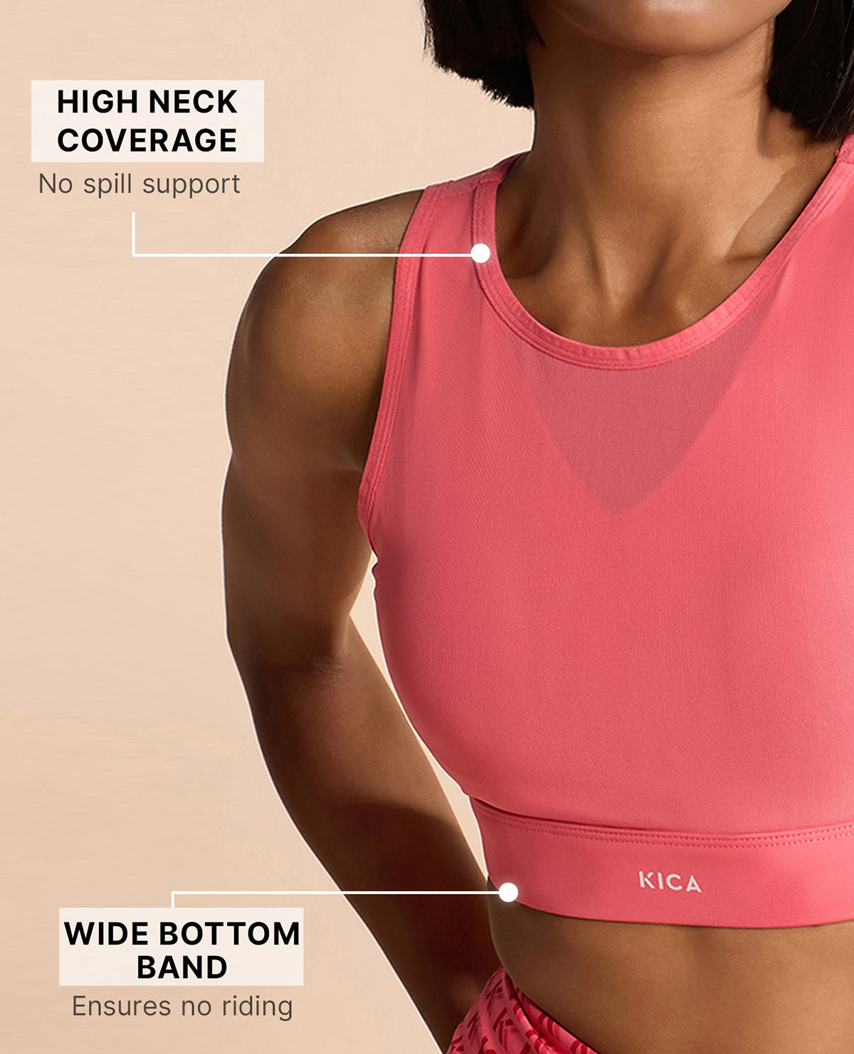Kica Women High Impact & Full Coverage Mesh Sports Bra Apple