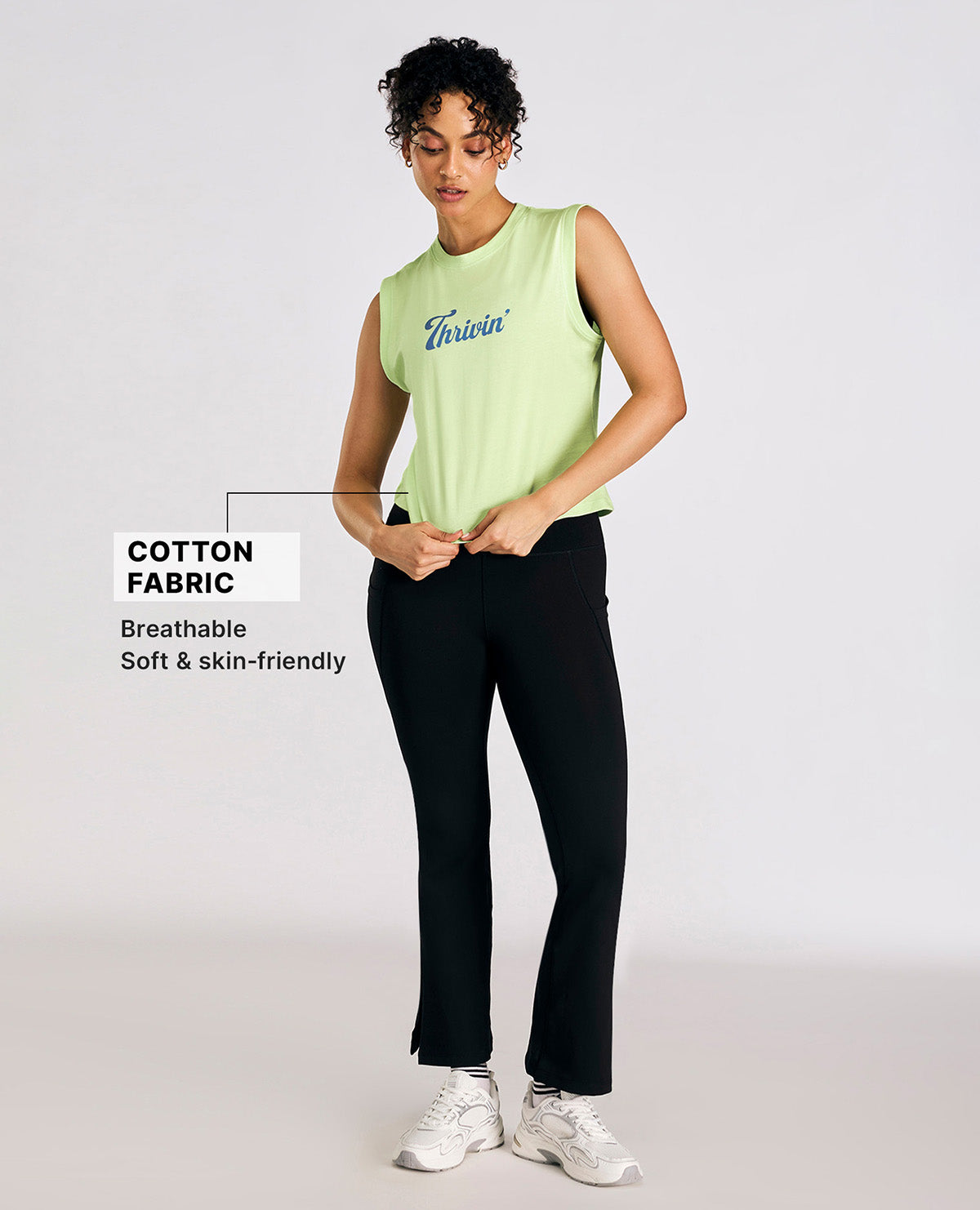 Elevate your essentials with this Women’s Cotton Muscle Tank Top, crafted from 100% soft, breathable cotton for all-day comfort. The muscle tank silhouette allows for relaxed arm movement, while the ribbed neckline adds a clean, structured finish.Featuring a bold chest print, this sleeveless top brings a sporty edge to any look. Perfect for everything from workouts to casual wear, it’s your go-to for effortless, active style. Key Features: -Made from 100% soft, breathable cotton for all-day comfort -Muscle tank silhouette offers relaxed arm mobility -Ribbed neckline for a clean, structured finish -Bold chest print adds a sporty edge -Easy to style for workouts or everyday wear Model Details:Model wears a S, is 5'9.5/177 cm tall, Bust Size: 34/85 cm, Waist: 25.5""/65 cm, Shoulder : 61"", Hip: 40"" Fabric Details:100% cotton ,180 gsm