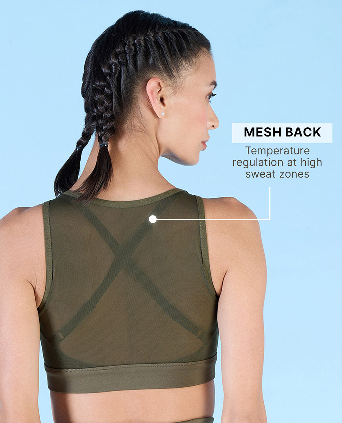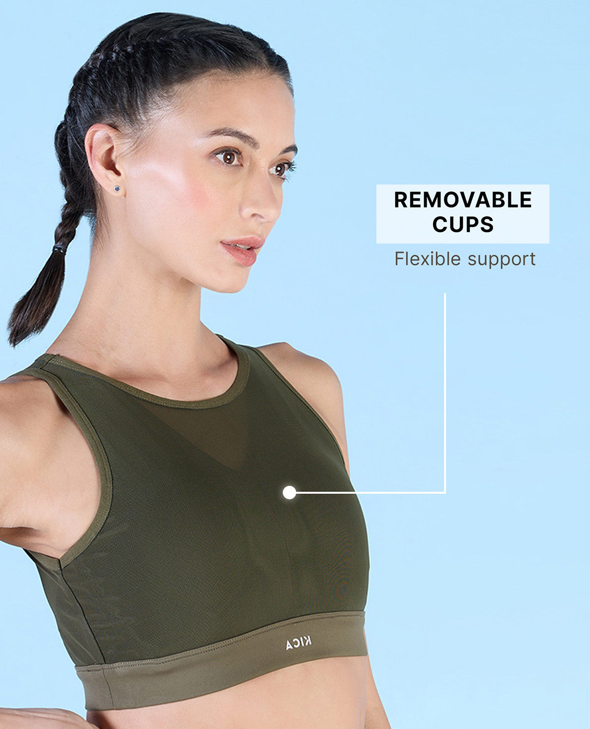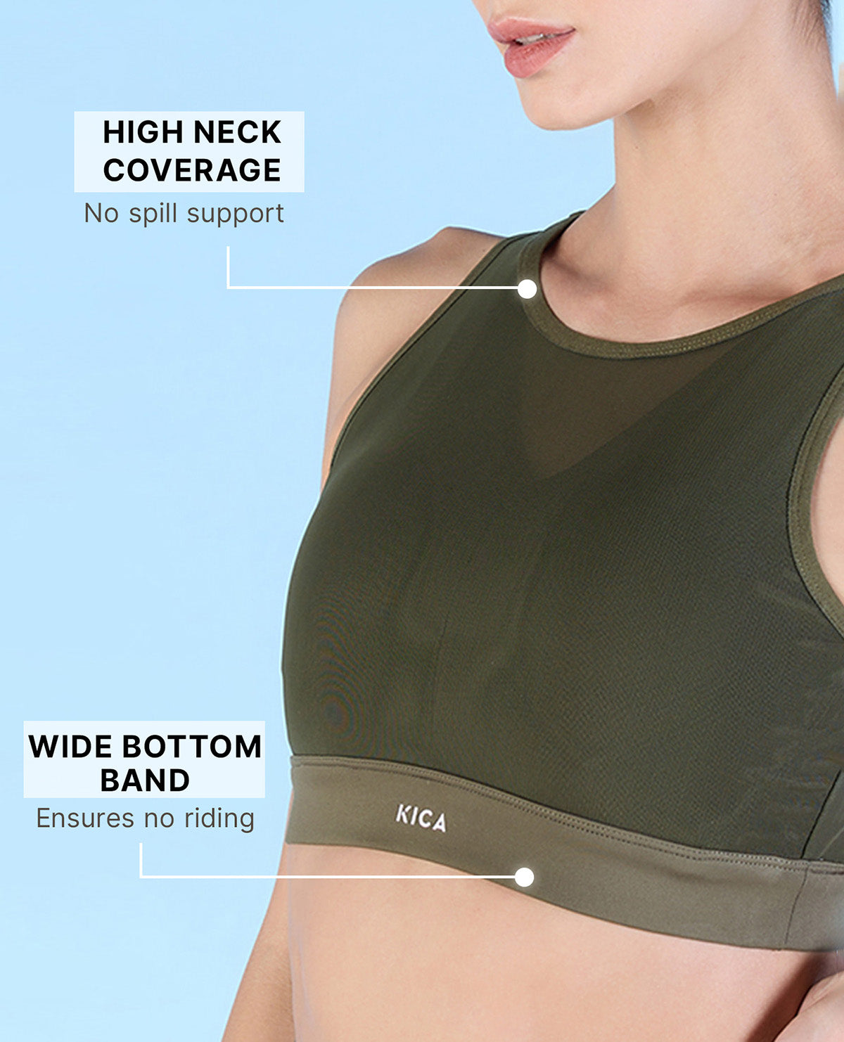 | Kica Women High Impact & Full Coverage Mesh Sports Bra Olive