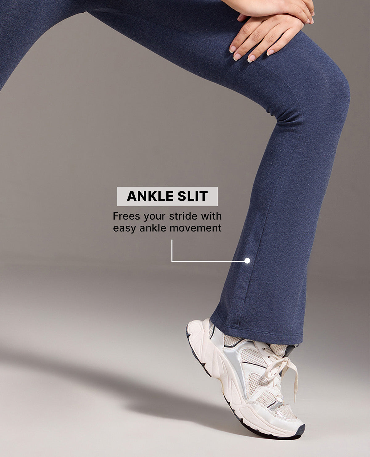 "Twirl, stretch, and slay in our Criss Cross Cotton Flare Pants, mid-rise, comfy, and effortlessly stylish. Made from soft, brushed cotton with a hint of stretch, these women’s flare pants hug your waist while giving your curves a natural, flattering shape. Perfect as gym pants for women or casual pants for everyday wear. Why you’ll love them: * Flattering fit: Criss-cross waistband cinches your waist for a sleek silhouette, making these high-rise pants perfect for women’s workout outfits. * Move with ease: Mid-rise cut and stretchy fabric let you twist, turn, and lounge without restrictions, ideal as gym pants or lounge pants for women. * Chic details: Side slit at the ankle adds flair, while a back coin pocket brings functional style. * Versatile wear: Perfect for gym sessions, brunch dates, casual weekend vibes, or women’s activewear looks. Crafted in soft Melange Vortex PC Spandex (56% Cotton, 36% Polyester, 8% Spandex), the Criss Cross Cotton Flare Pants combine comfort, style, and stretch in one effortlessly wearable pair, great for women’s workout pants, casual pants, or flared pants for everyday wear. From workouts to weekends, these flare pants are your all-day-anywhere essential, ideal for women’s gym wear and athleisure"