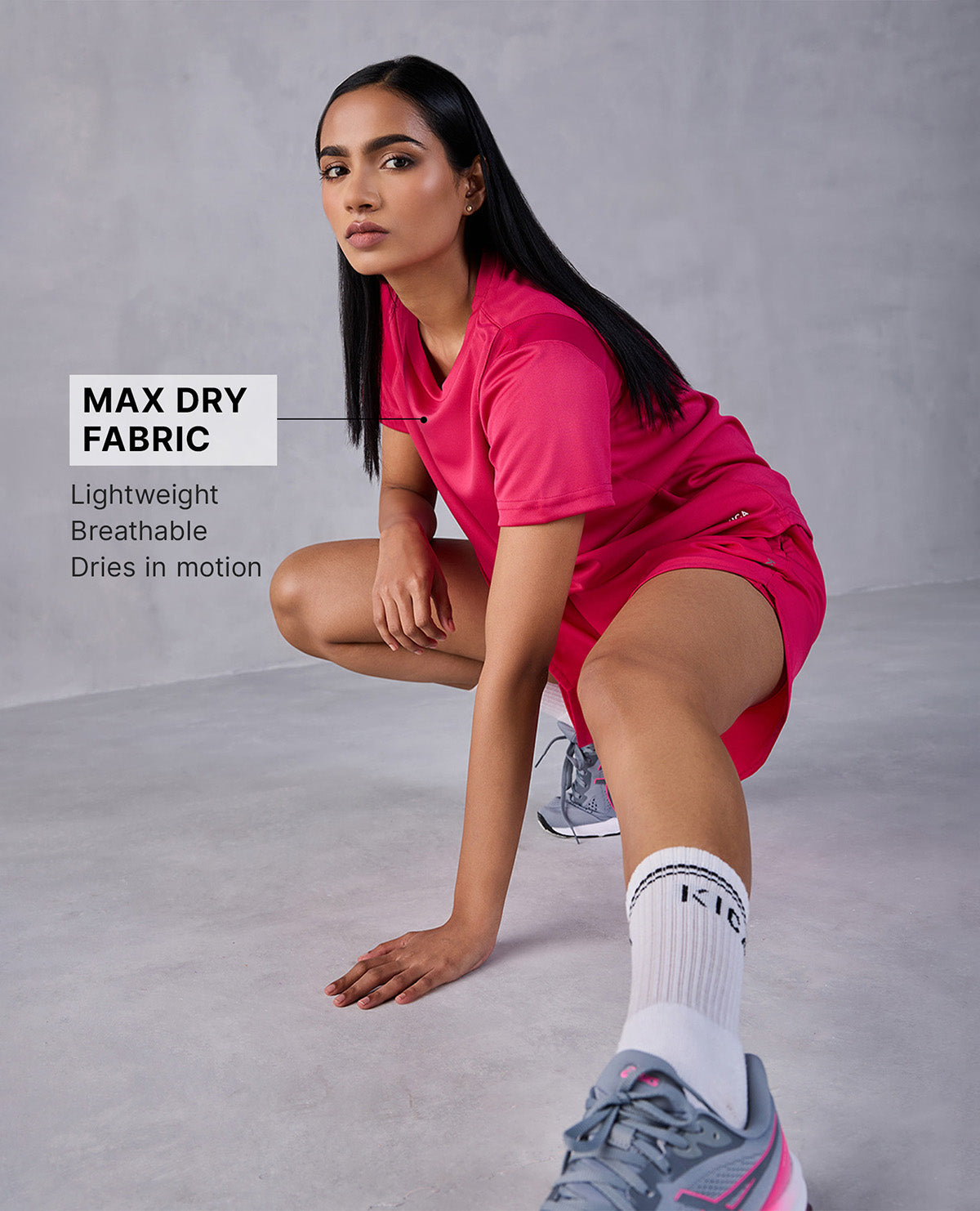 "The Max Dry Stride Running Top is your go-to sport top for women, built for runners who push limits. With breathable mesh inserts, it keeps you cool and sweat-free through every stride. Pair it with our Stride Shorts for the ultimate shorts for women combo. Why you’ll love it: * Mesh inserts for maximum ventilation and breathability * Lightweight, quick-drying fabric that moves with you * Perfect for running, gym sessions, or high-intensity training * Sleek design that pairs seamlessly with the Stride Shorts Crafted from high-performance fabrics, 100% Polyester for the body and 95% Polyester, 5% Spandex mesh side panels, this running top for women delivers comfort, stretch, and durability. From sprints to training sessions, this sport top for women keeps you cool, focused, and unstoppable."