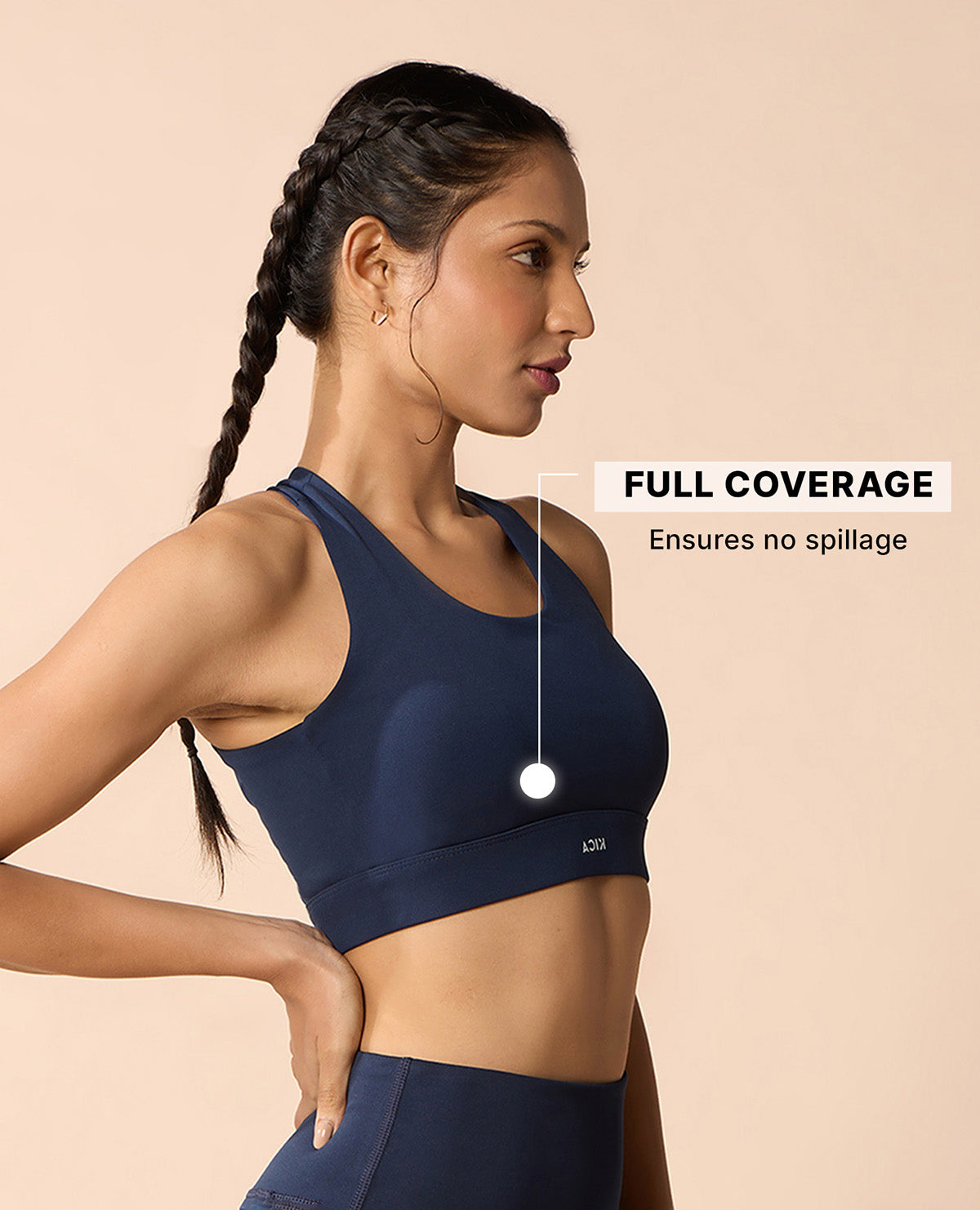 The Viral Crostini Sports Bra — Loved by Lakhs of Women Meet the Crostini Sports Bra, a cult-favourite from our signature Kica SKN range - lightweight, breathable, 4-way stretch, and quick-dry, it’s the padded sports bra for women that truly feels like a second skin. Why You’ll Love It: - Built for training, running, yoga, and dance, Crostini delivers maximum support and freedom to move. - Cross-back design reduces shoulder strain and keeps you secure through every high-impact session. - High neck + full coverage = zero cleavage or side-boob slips - just a sleek, sculpted fit. - Removable pads and stitched panels prevent shifting or bunching, even after multiple washes. - Adjustable back closure ensures easy wear and removal post-workout. Pair It With: Complete your look with high-performance Booty shorts, Leggings or Flare pants from the Kica SKN collection - engineered to move with you from studio to street.
