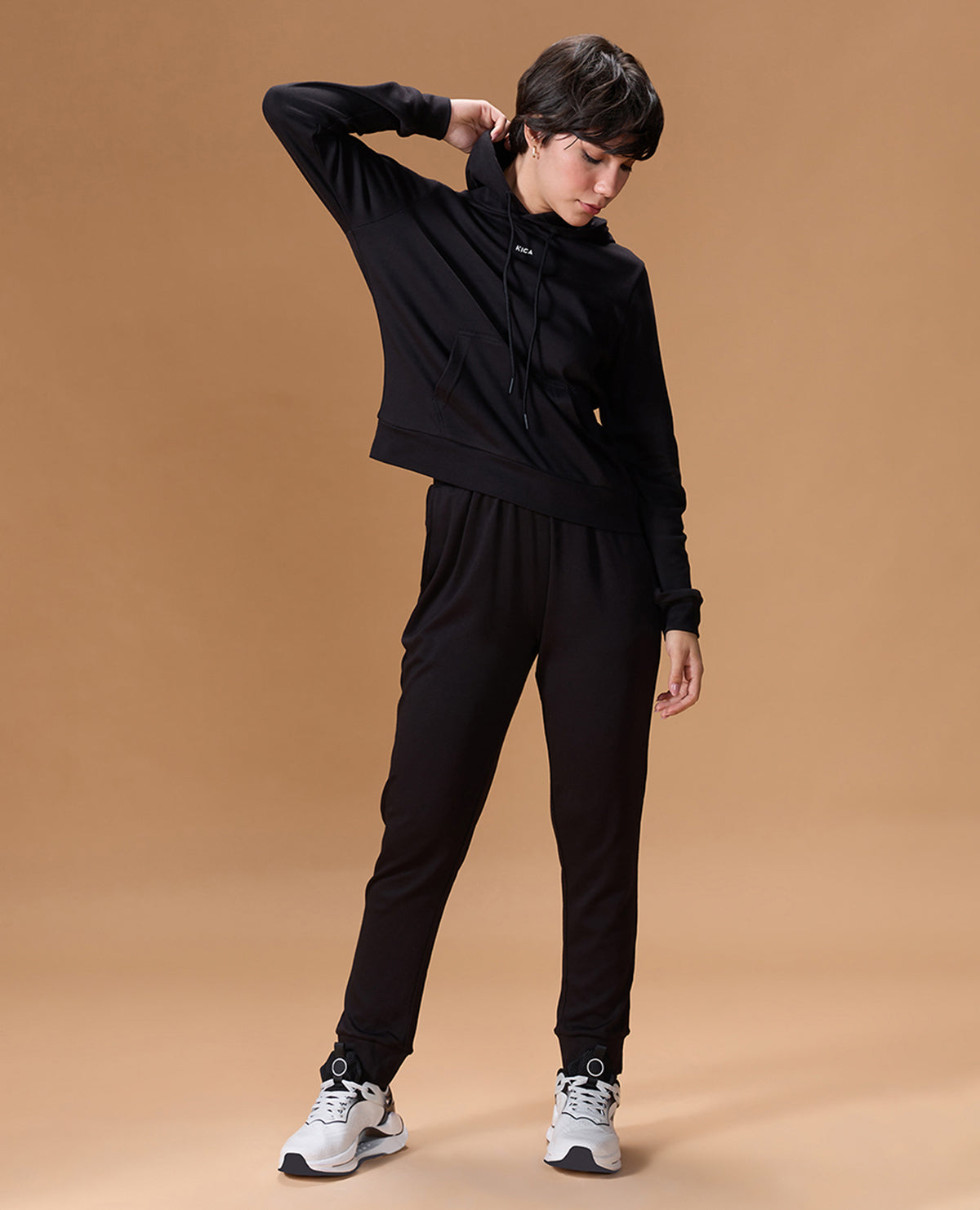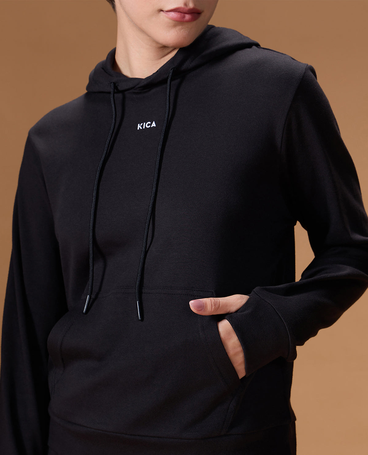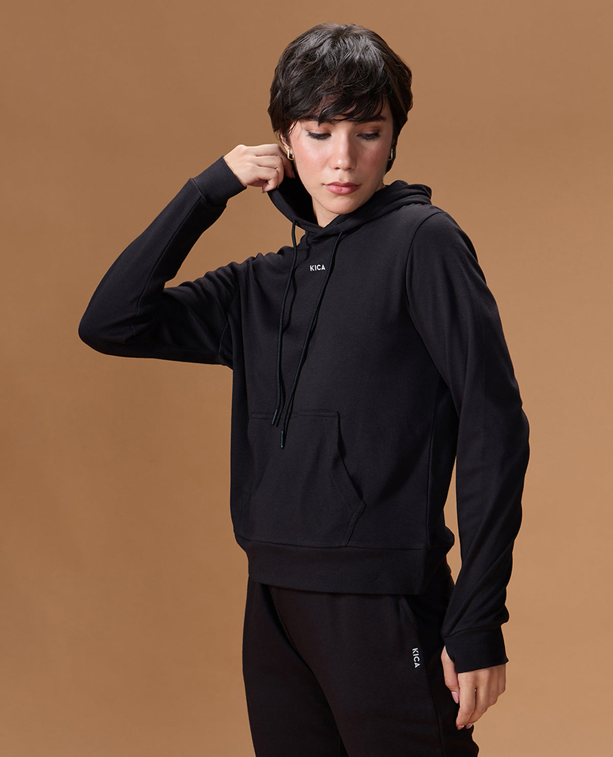 Grab the softest cotton hoodie for daily wear. Crafted in cotton modal fabric, it is gentle on your skin and drapes beautifully on your body. It has a ribbed hem that hugs your body while giving it shape. With kangaroo pockets to store your essentials or keep your hands warm, it is ideal for casual outings or lounging at home.