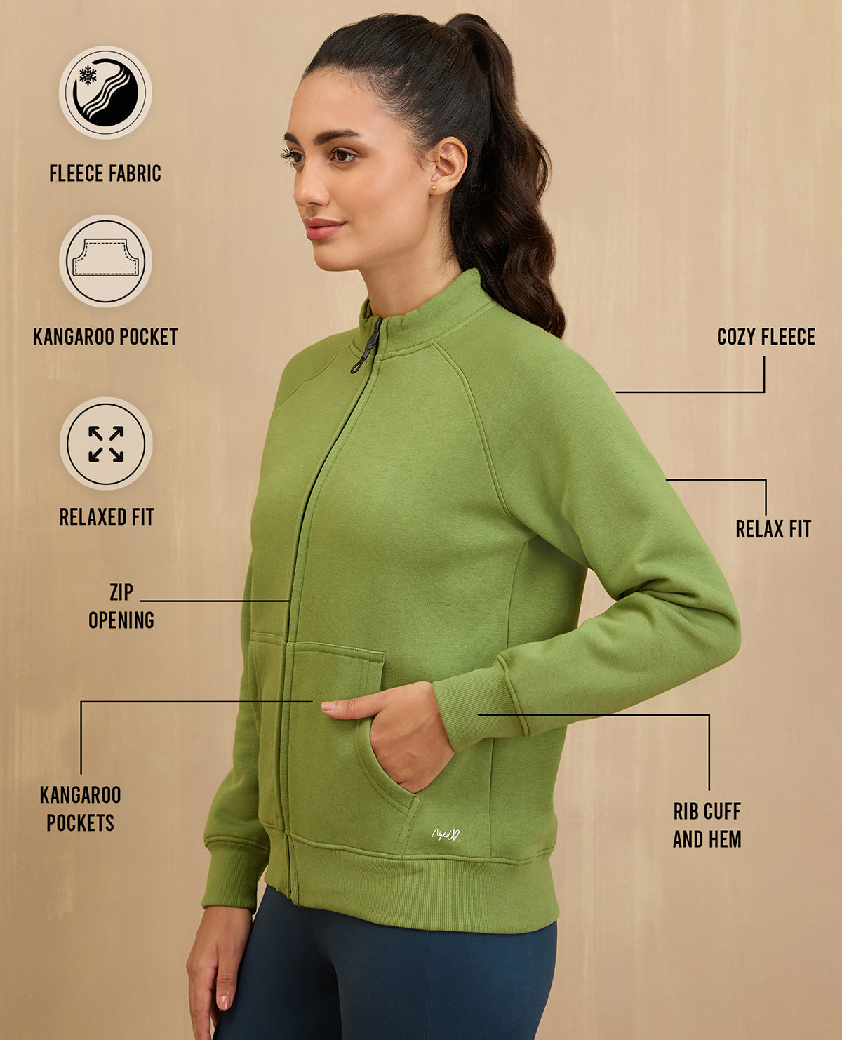 NYKD By Nykaa Cozy Fleece Zippered Jacket -NYLE704-Green