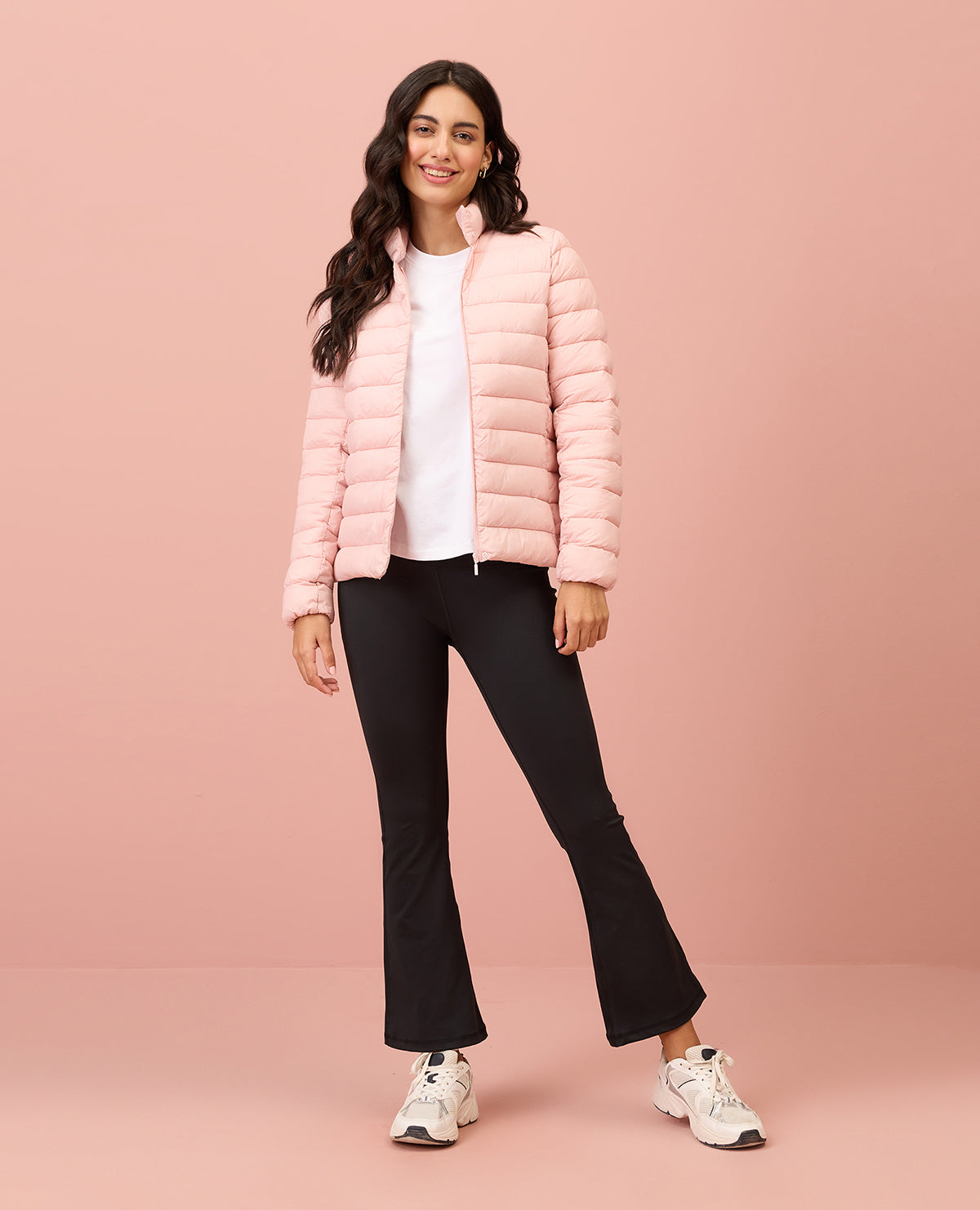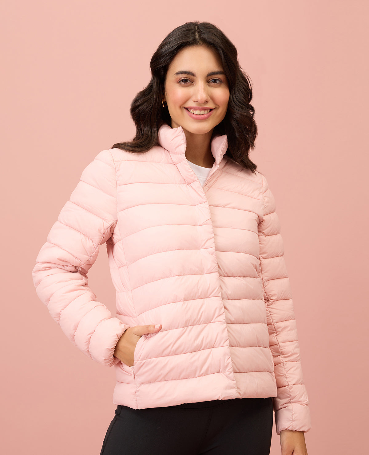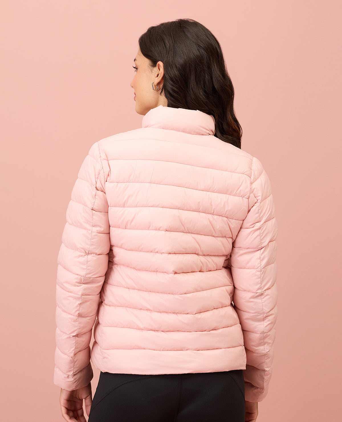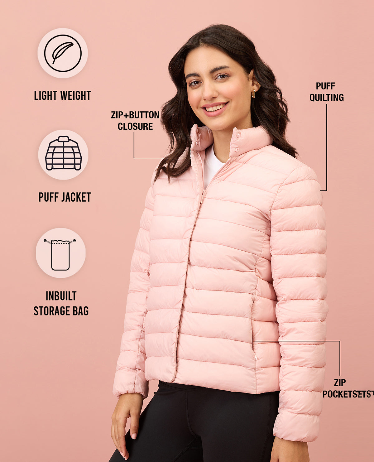 NYKD By Nykaa Ultra Light Weight Puffer Jacket with Inbuilt Bag (Set of 2)-NYAT405-Pink