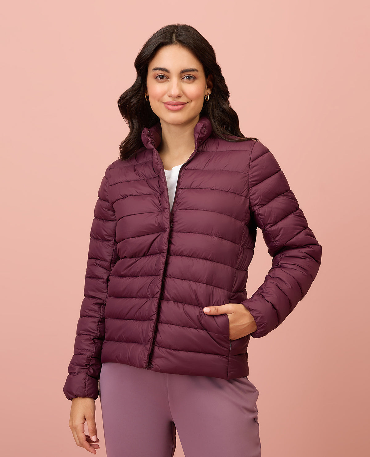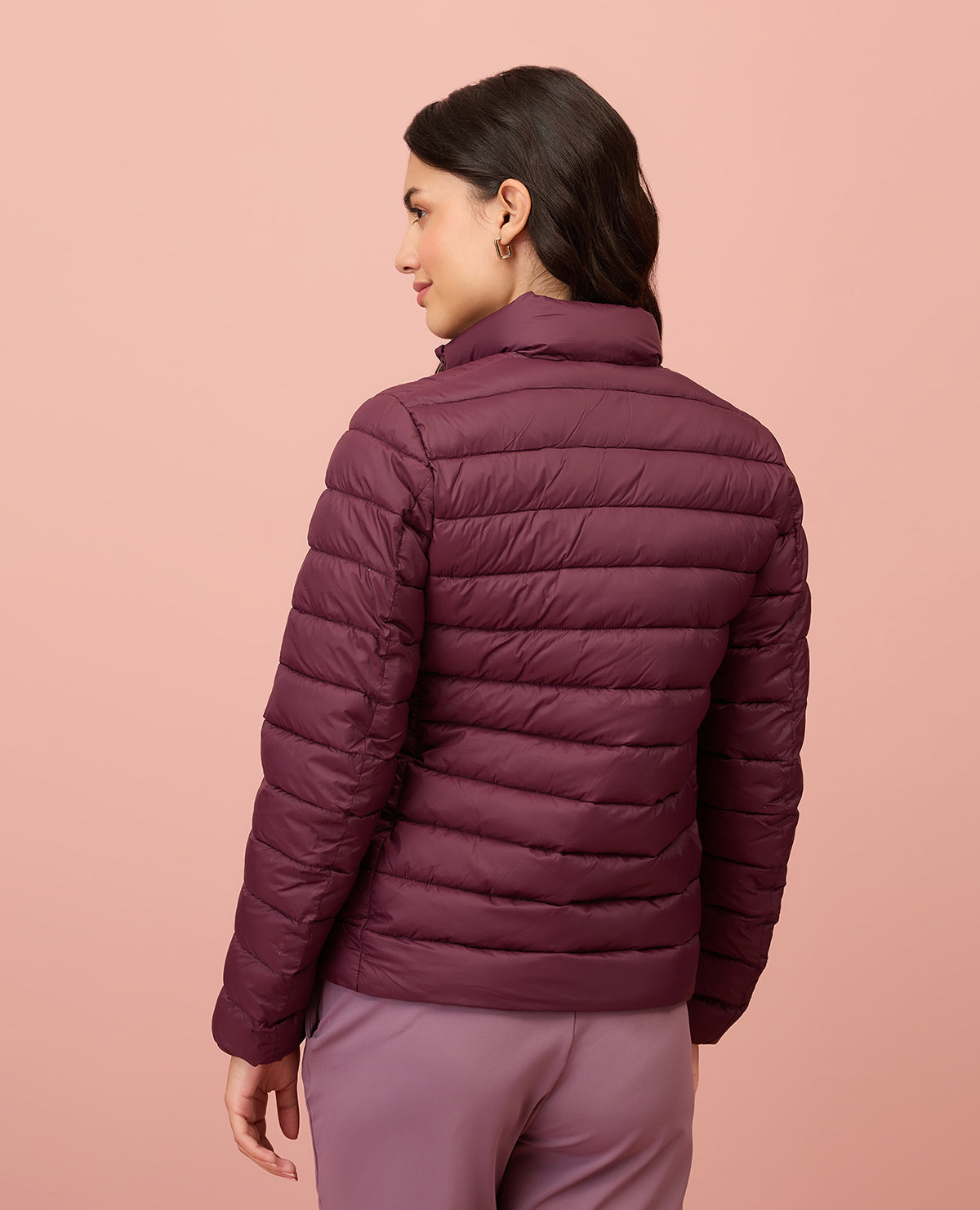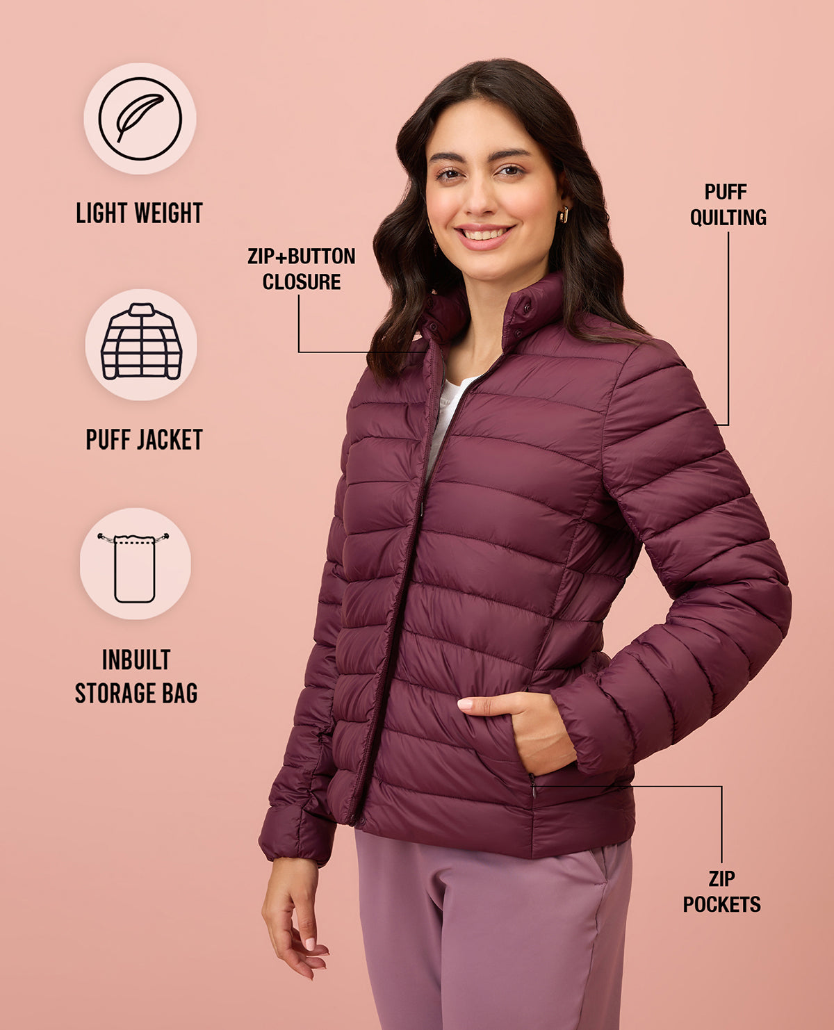 NYKD By Nykaa Ultra Light Weight Puffer Jacket with Inbuilt Bag (Set of 2)-NYAT405-Wine