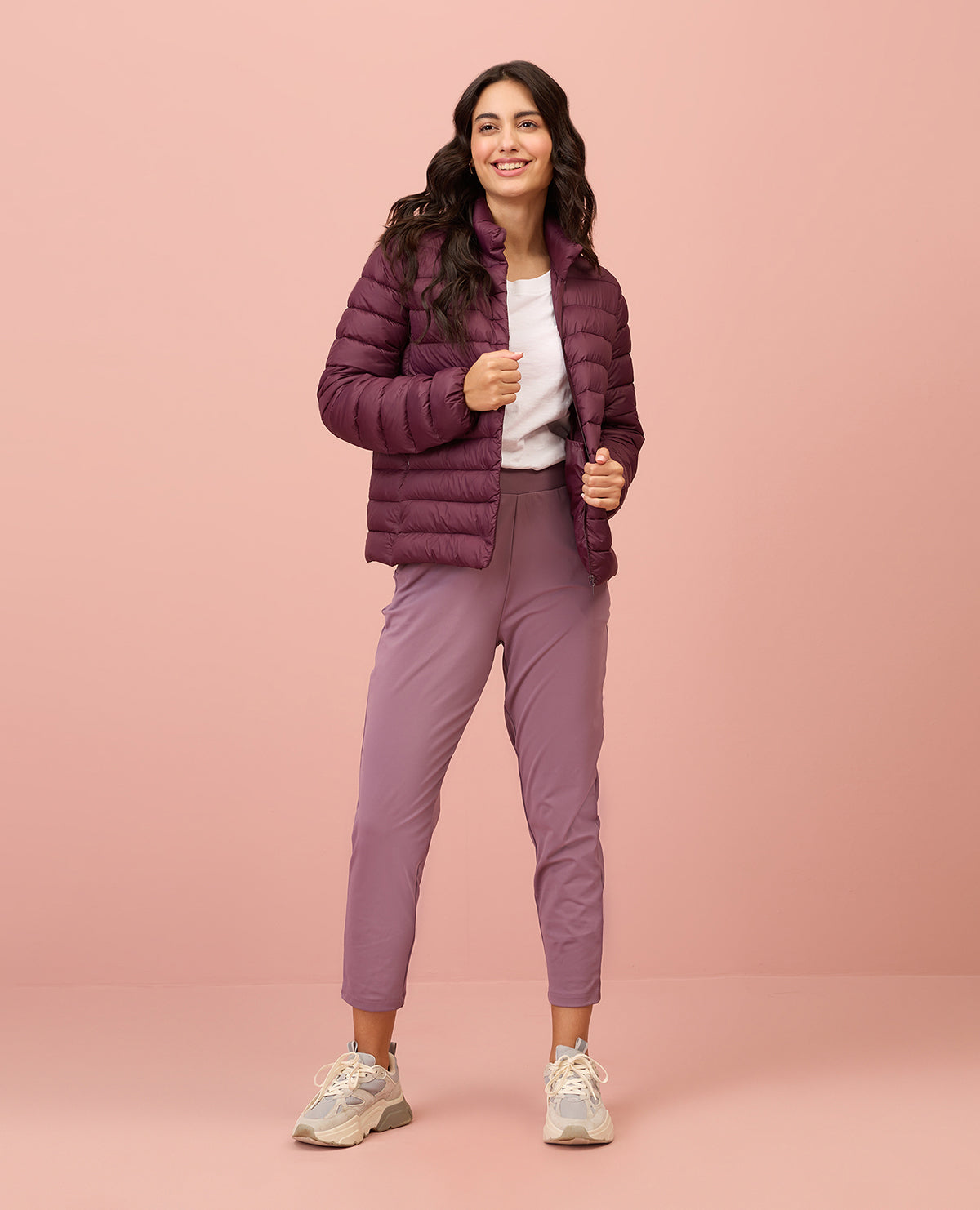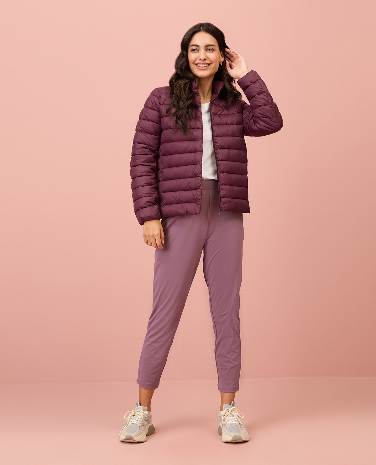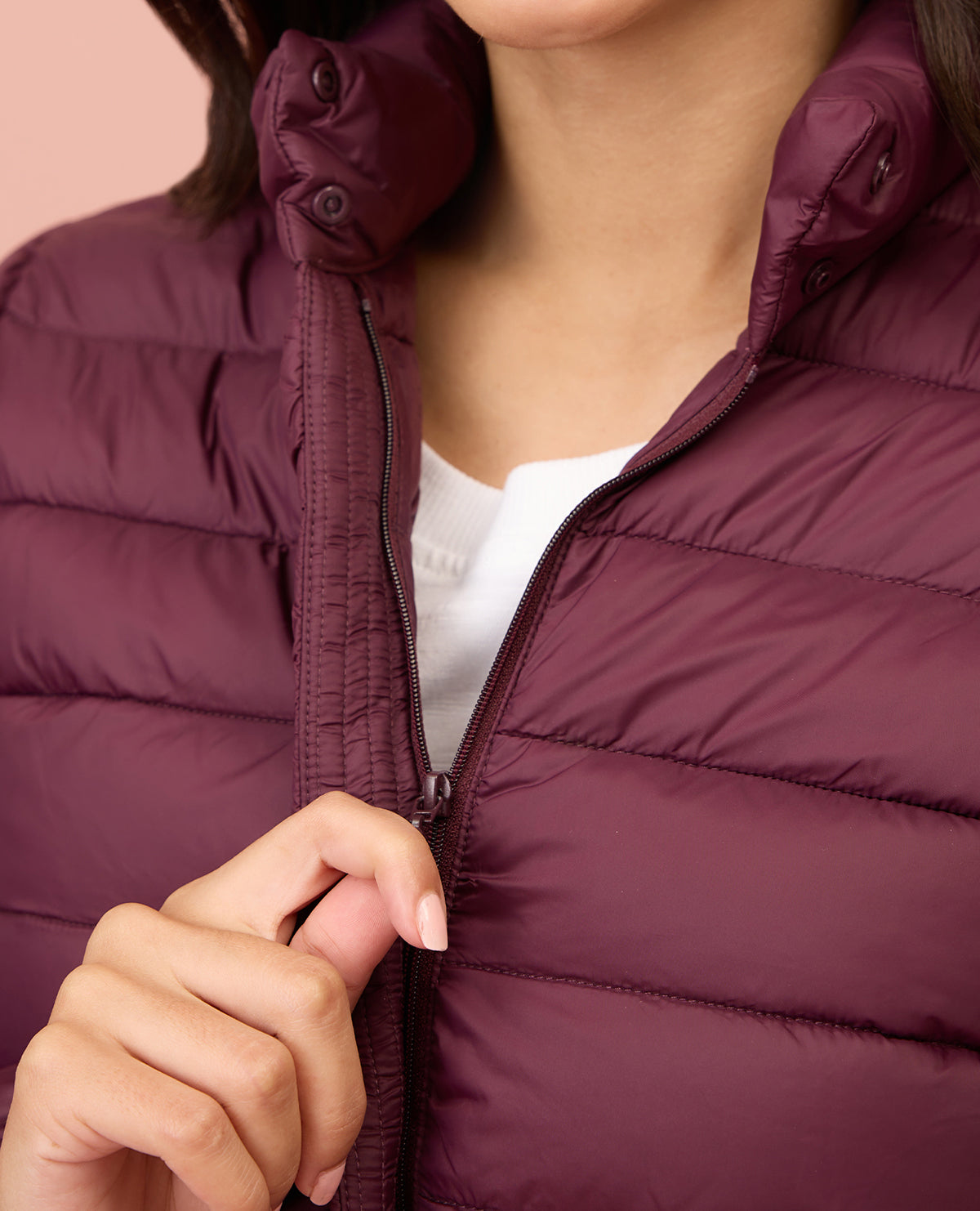 NYKD By Nykaa Ultra Light Weight Puffer Jacket with Inbuilt Bag (Set of 2)-NYAT405-Wine