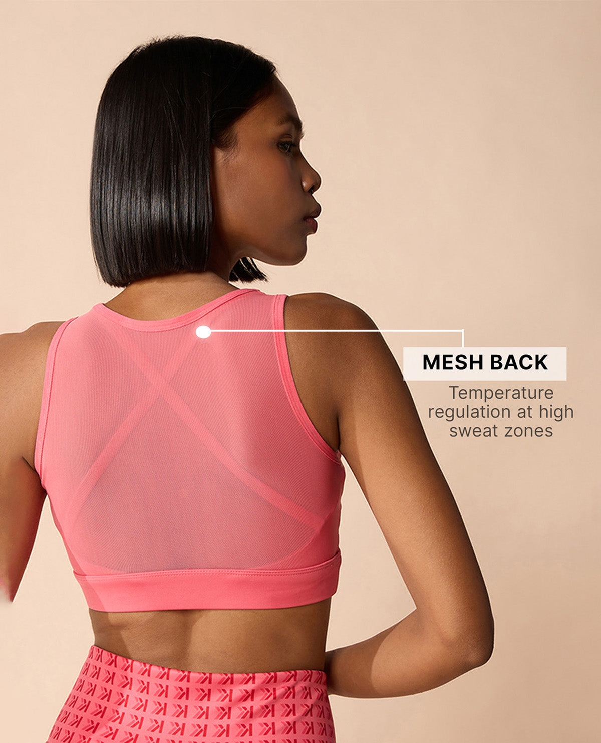 "The Mesh Sports Bra is your go-to high-impact sports bra for women that doesn’t compromise on style or comfort. Crafted in our cult-favourite Second SKN fabric, this lightweight, breathable, gym sports bra for women is stretchable, quick-drying, and keeps you sweat-free and confident from start to finish. Why you’ll love it: * Maximum support: Perfect for gym sessions, running, dance, or yoga flows, keeps you secure in every move, making it one of the best sports bras for women. * Custom comfort: Adjustable straps let you find your perfect fit for padded or non-padded sports bra needs. * Stay-dry tech: Mesh back ensures breathability and keeps you cool even during the sweatiest workouts. * Edgy style: V-neck design adds a chic, sporty edge, perfect as a stylish sports bra for women. * Versatile wear: Removable cups let you wear it your way, gym-ready or styled as a crop top bra for women. Made in our signature Second SKN blend (88% Polyester, 12% Spandex) with breathable Nylon-Spandex mesh (92% Nylon, 8% Spandex), the Mesh Sports Bra delivers a snug-yet-stretchy fit that works as hard as you do. From high-intensity sessions to weekend street style, the Mesh Sports Bra is your versatile, all-day-anywhere essential, ideal for women’s workouts and gym sessions."