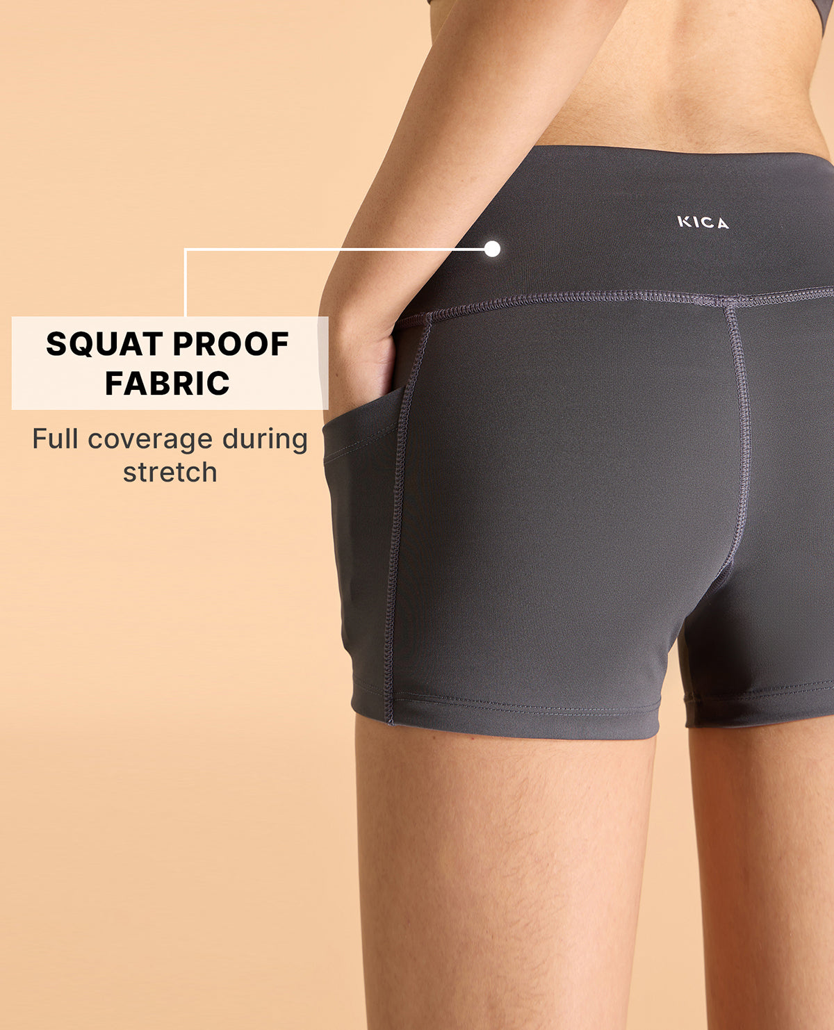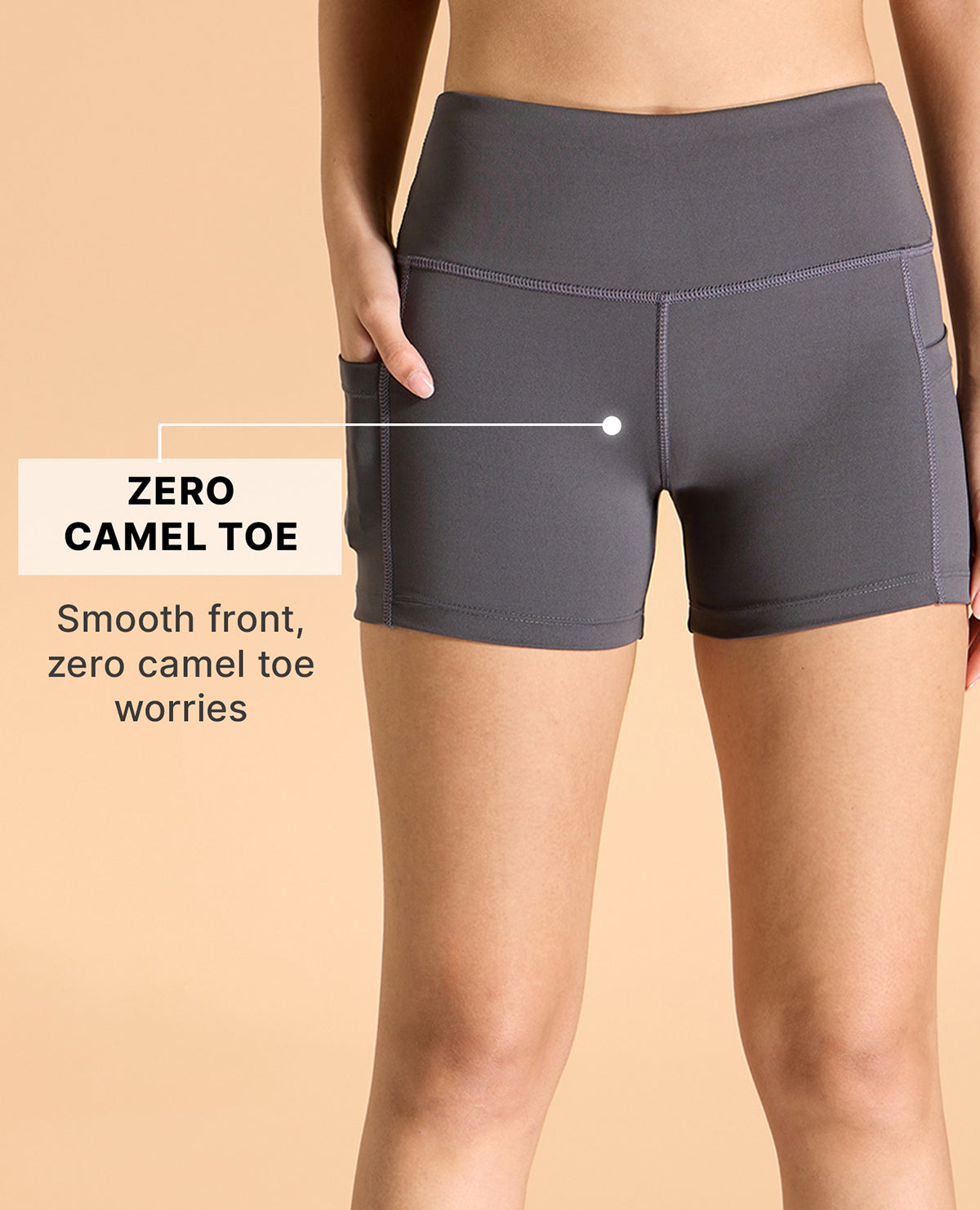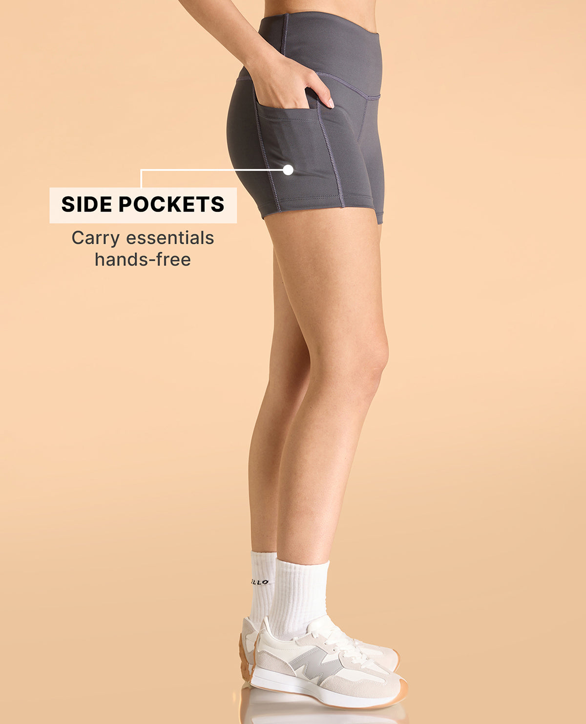 "Level up your activewear with our High Waisted Booty Shorts, your go-to for workouts, lounging, and everything in between. Designed in our signature Second SKN fabric, these seamless shorts for women are breathable, fast-drying, and sweat-wicking, so you can move with confidence, distraction-free. Why you’ll love them: * Stay-put design: High waist with an anti-slip waistband keeps the shorts in place through every move, making them the ideal gym shorts for women. * Essentials on the go: Two side pockets to stash your phone, keys, or cards. * All-day comfort: 4-way stretch fabric moves with you for a snug-yet-stretchy fit, great as daily wear shorts for women. * Flawless fit: 10"""" inseam and wear-tested by our in-house team for the perfect cut, ideal as cycle shorts for women or biker shorts women swear by. * Versatile styling: Pair them with our Graphic Tees for a look that’s gym-ready and street-approved. Made in our cult-favourite Second SKN blend (88% Polyester, 12% Spandex), the High Waisted Booty Shorts for women are breathable, durable, and built for all-out movement. From sweaty sessions to casual weekends, these sports shorts women love will keep up with your every move, whether at the gym, studio, or street."