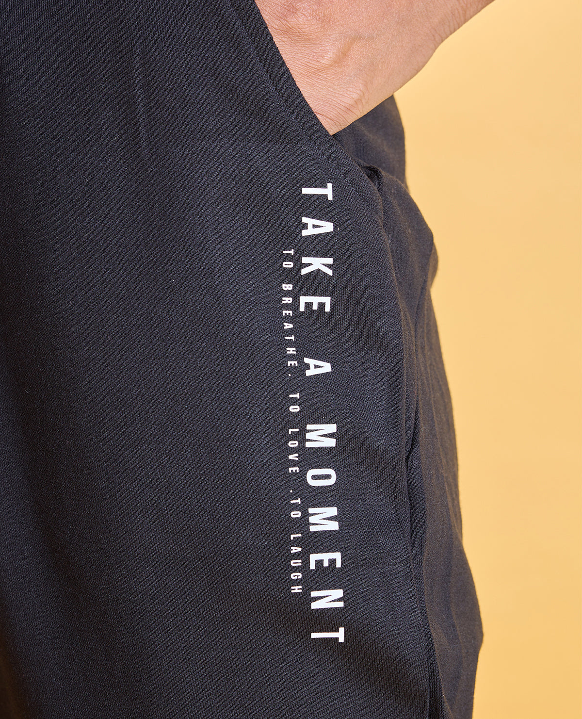 Mindful graphic print on left leg with a relaxed fit