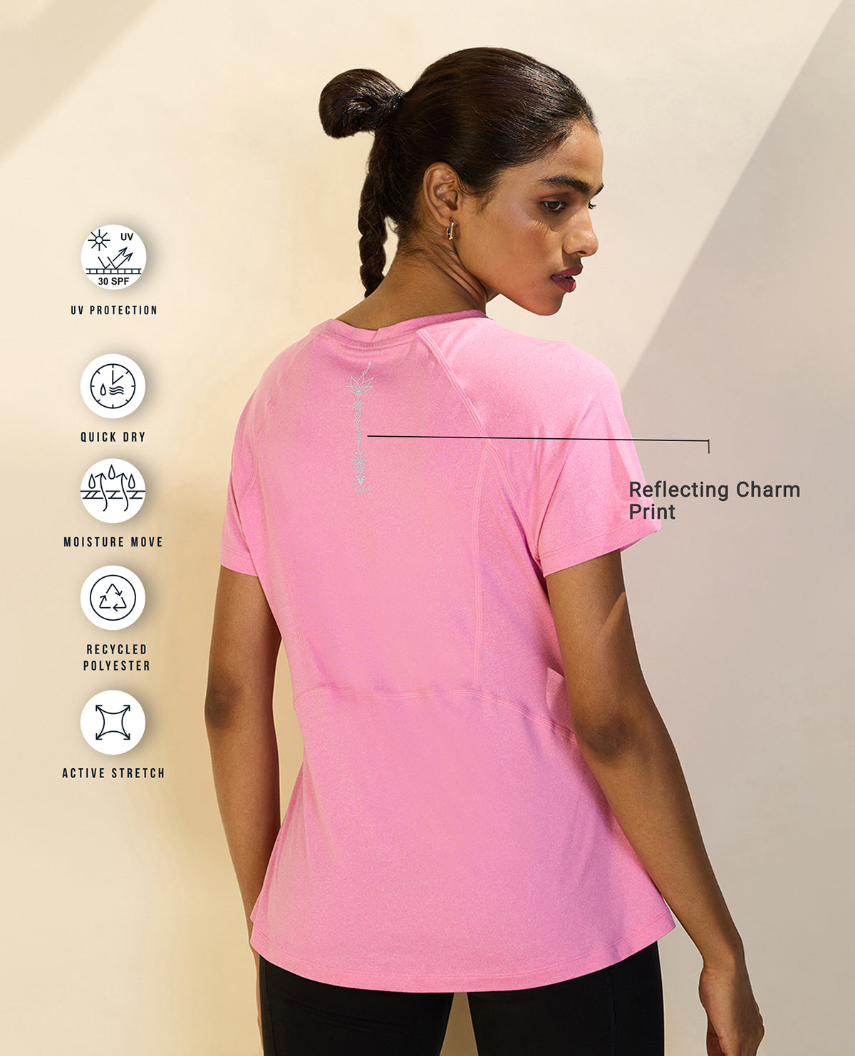 With quick drying & UV protection fabric with reflective charm print for a comfy & feel good look, your workout just got better.
