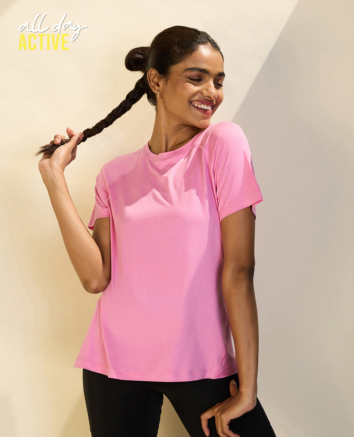 Don't miss a workout with this UV running tee, designed with raglan sleeves and sustainable fabric.