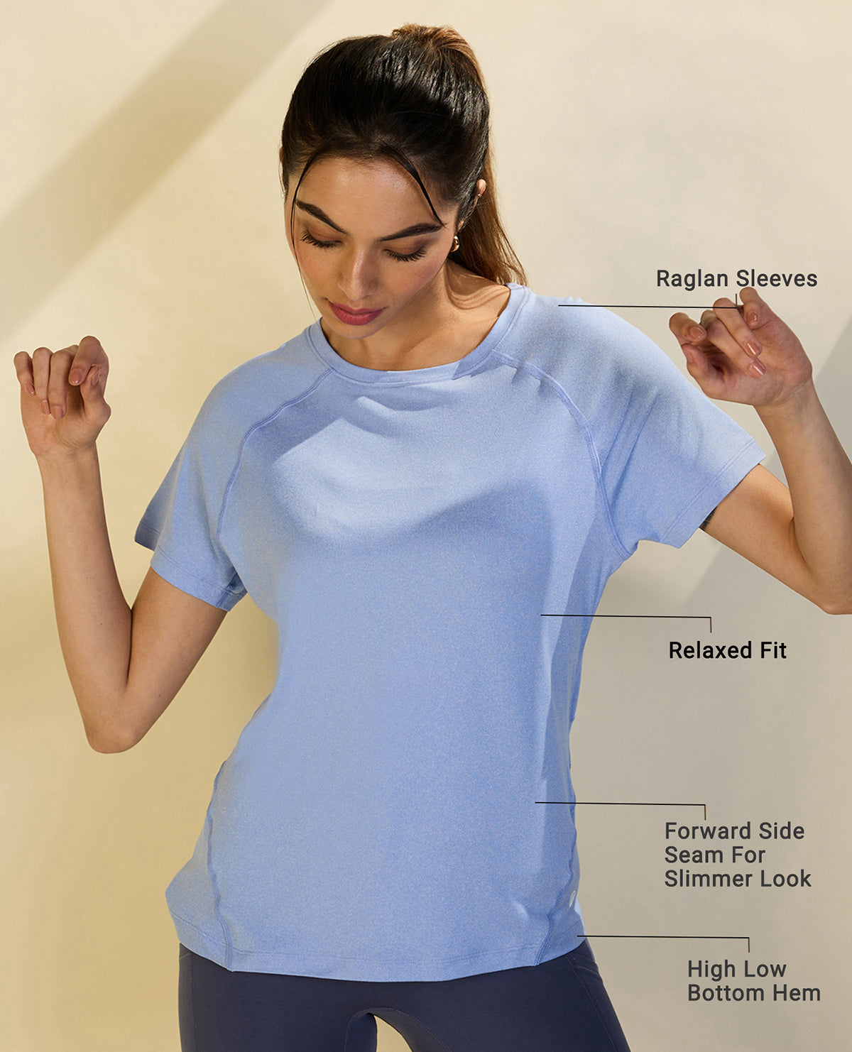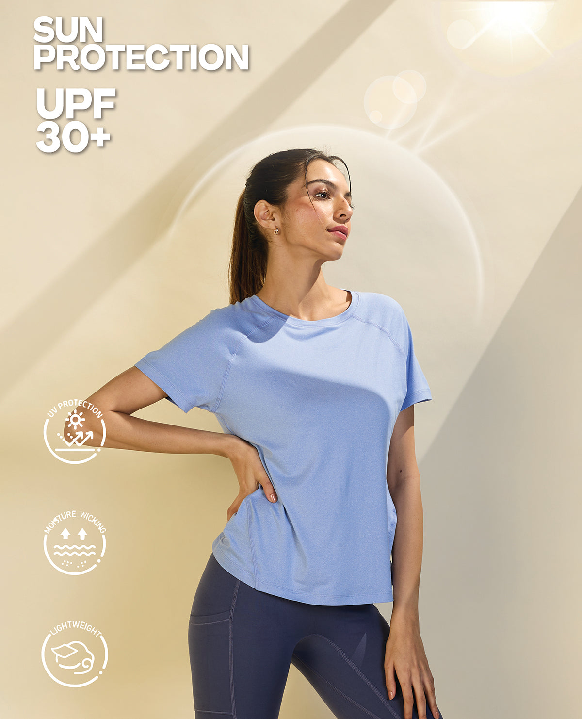 Don't miss a workout with this UV running tee, designed with raglan sleeves and sustainable fabric.