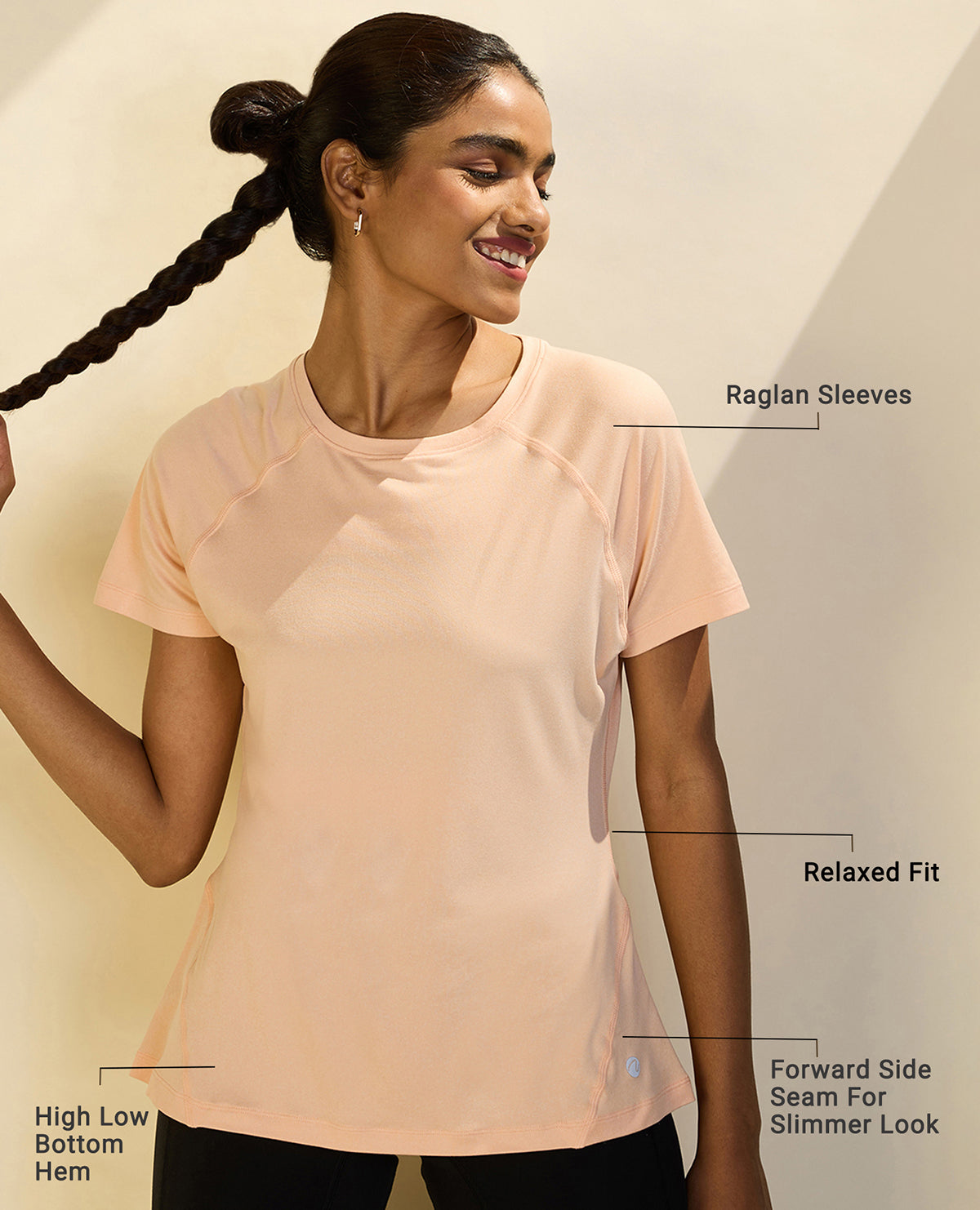 Don't miss a workout with this UV running tee, designed with raglan sleeves and sustainable fabric.
