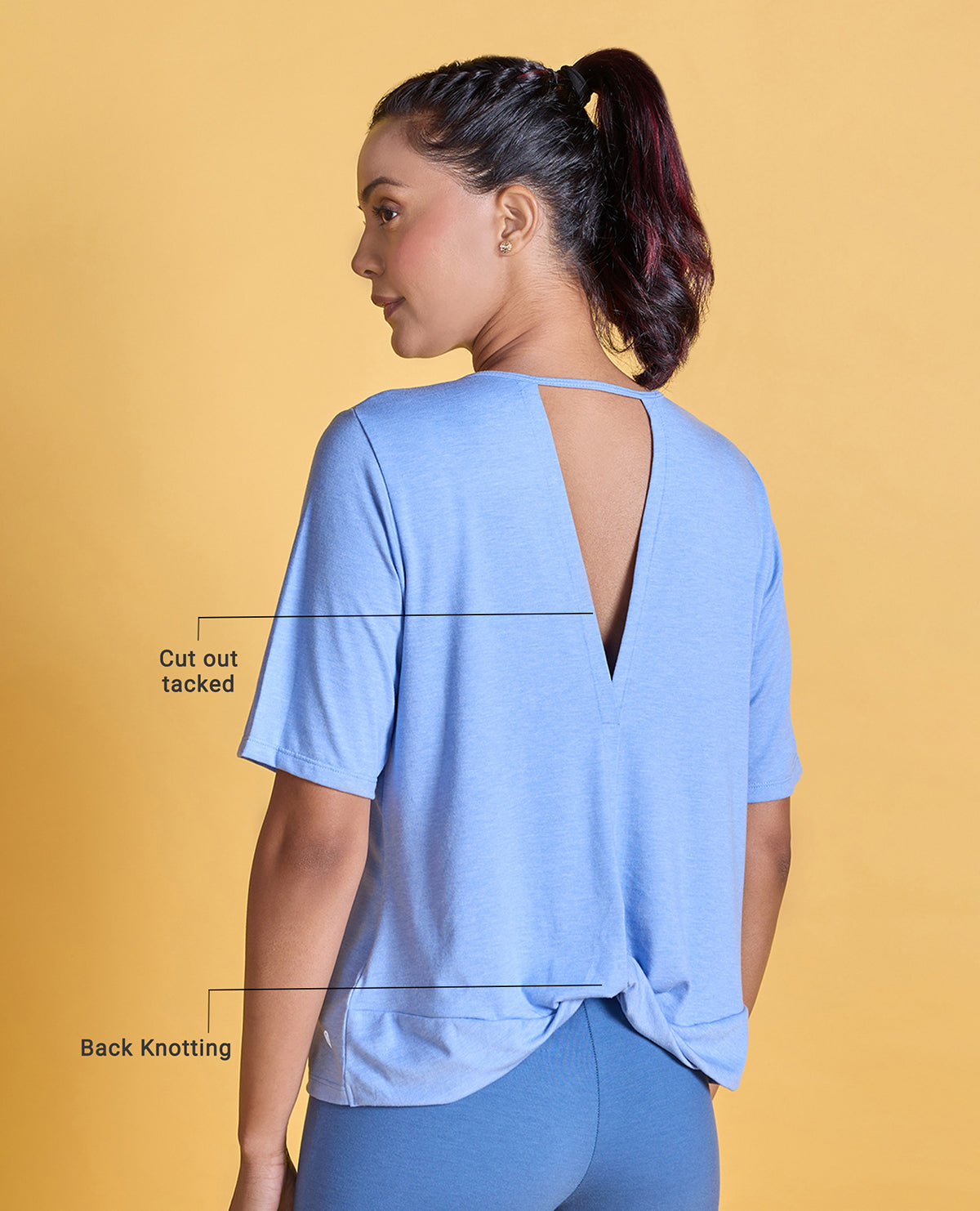 Nykd All Day Textured Cutout Back Knot Overlay - NYAT267- Blue melange