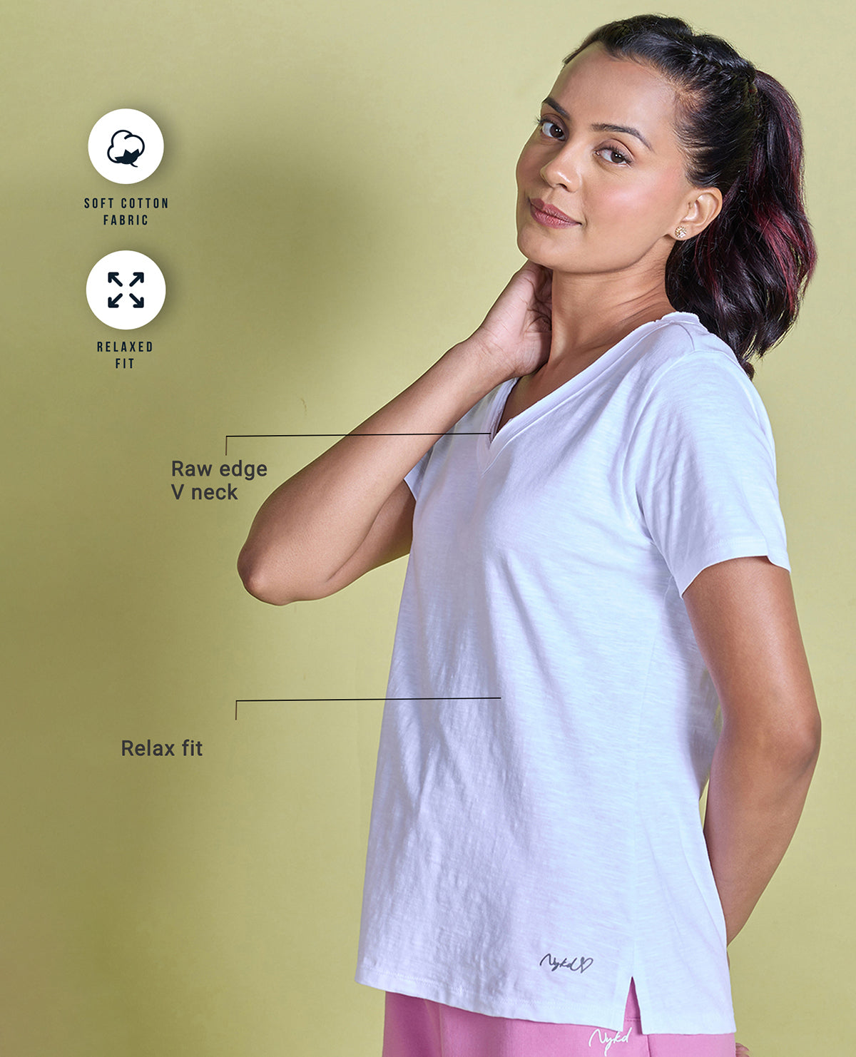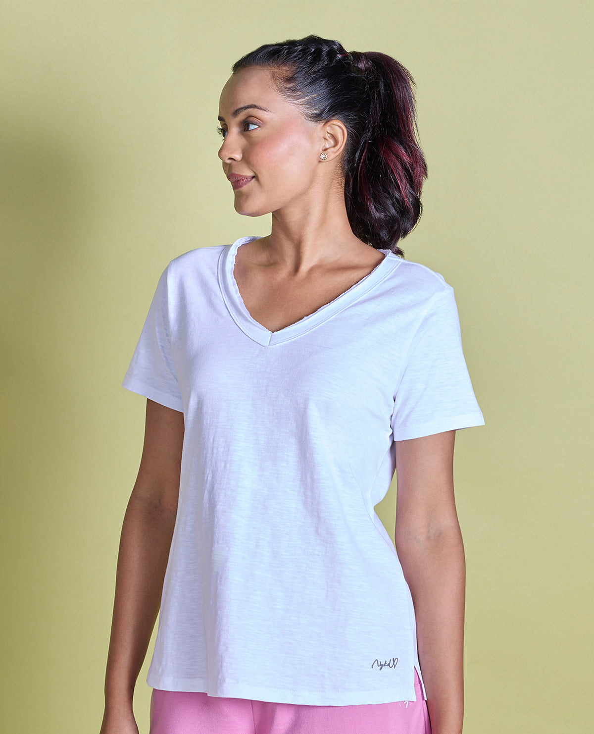 This v neck cotton tee is perfect for a simple yet elevated look - for brunches, coffees and walks- Anywhere, Anytime!