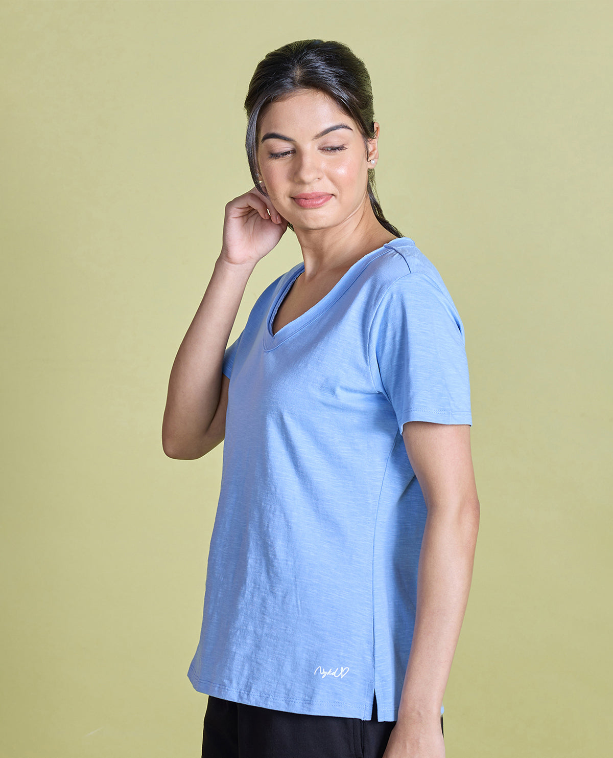 This v neck cotton tee is perfect for a simple yet elevated look - for brunches, coffees and walks- Anywhere, Anytime!
