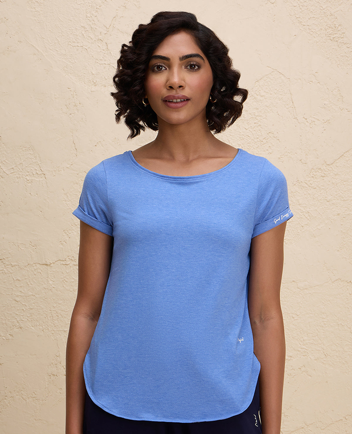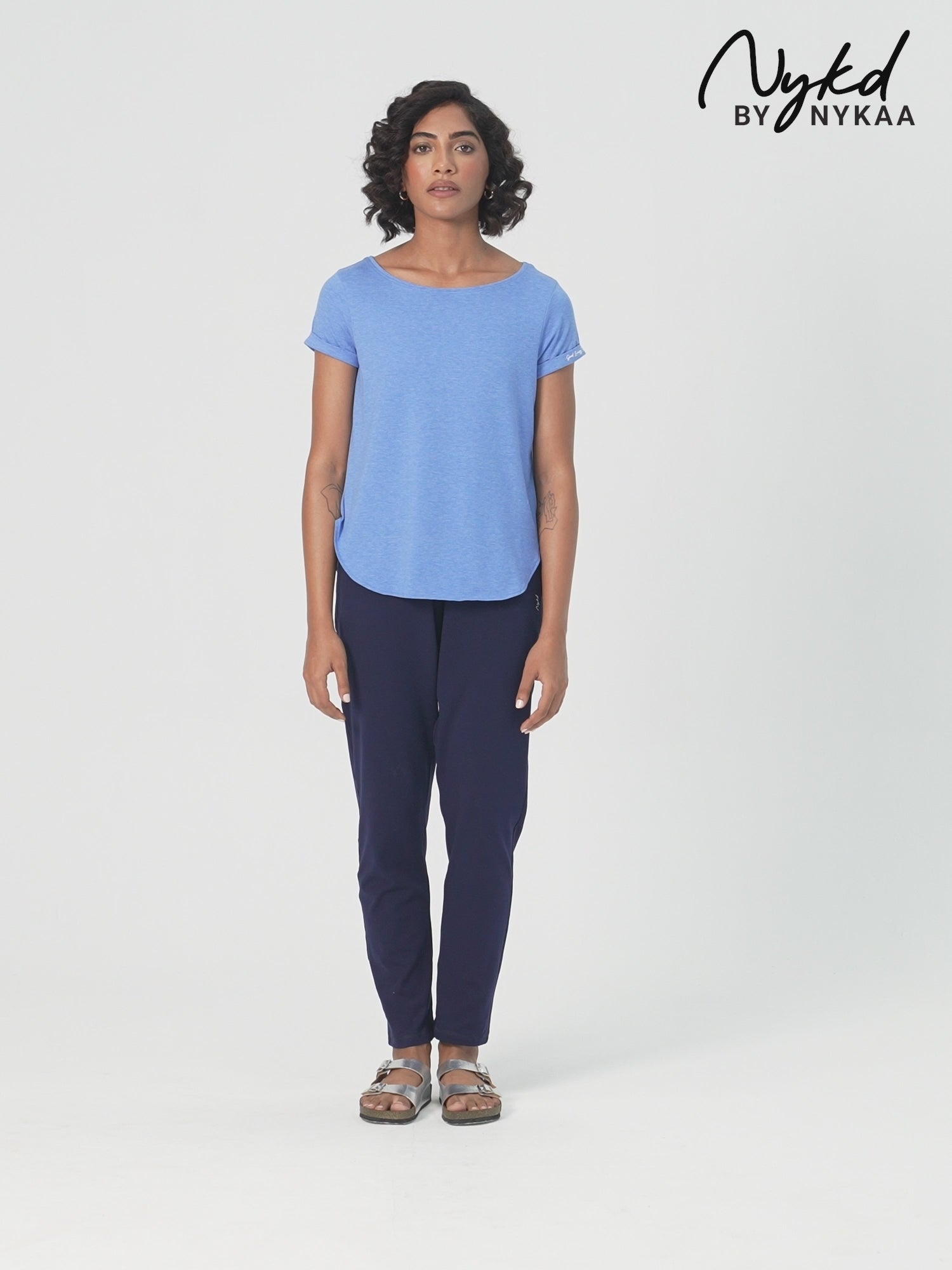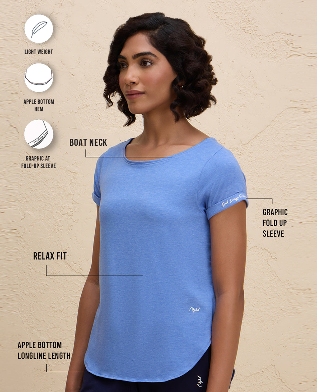 Nykd By Nykaa After Class Apple Bottom Flattering Longline Tee-NYAT272-Blue Melange