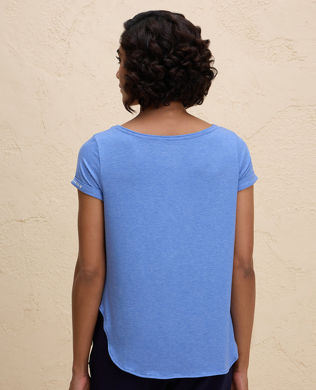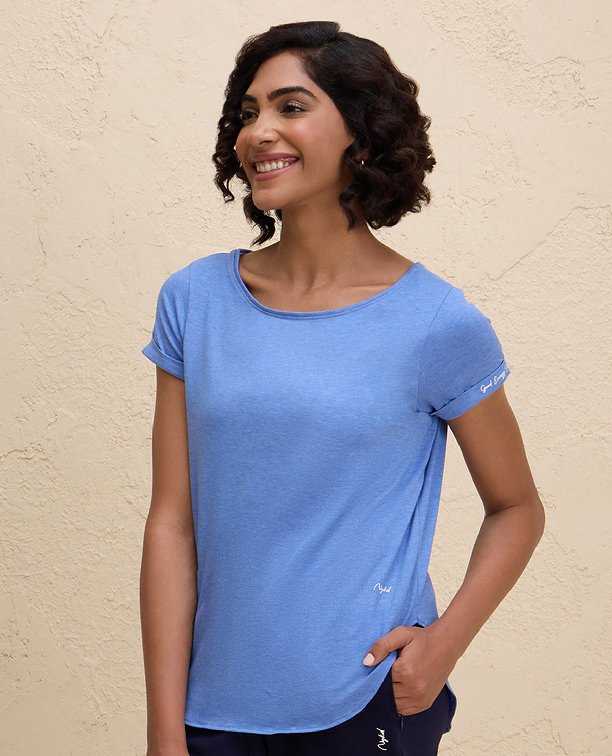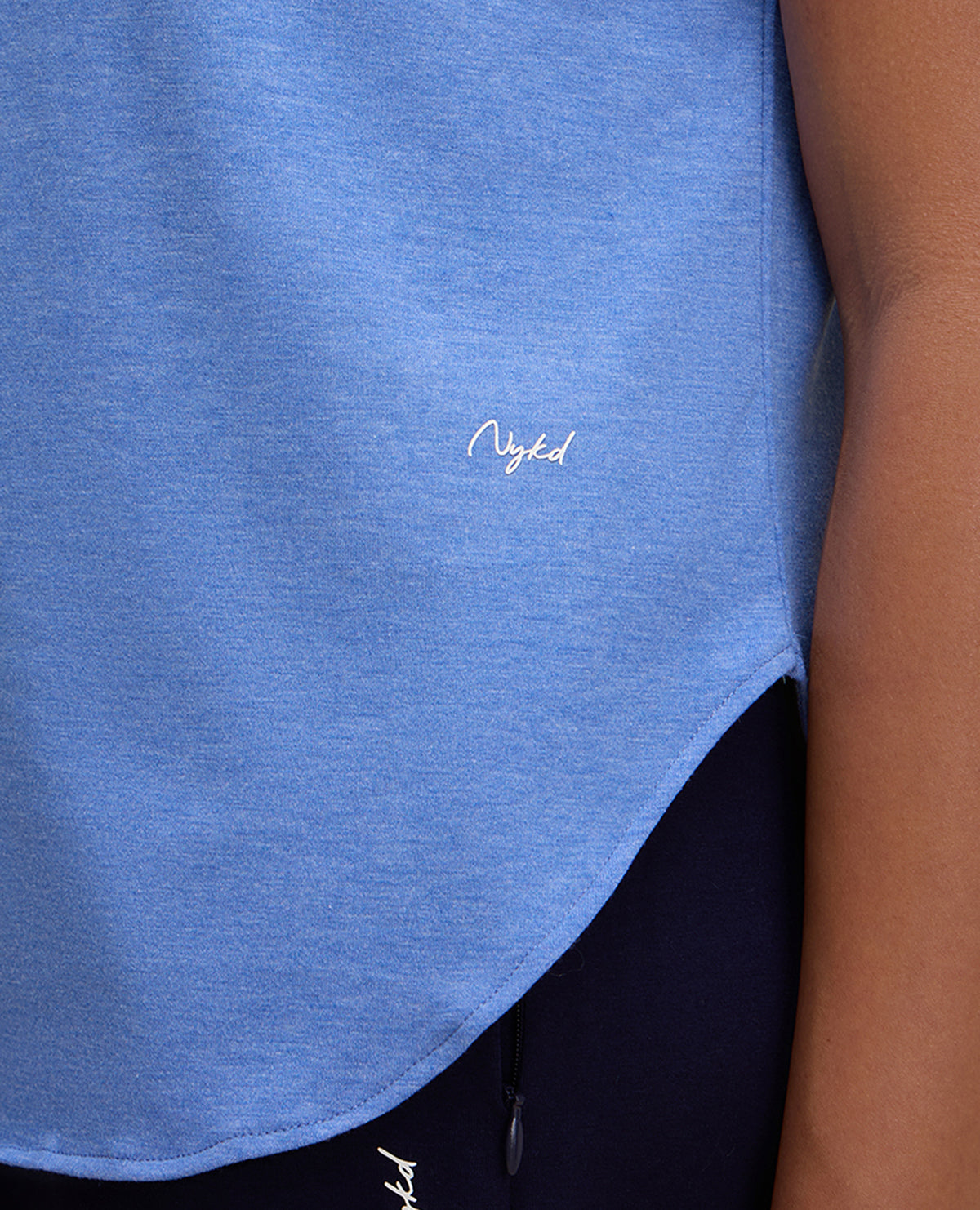 Nykd By Nykaa After Class Apple Bottom Flattering Longline Tee-NYAT272-Blue Melange