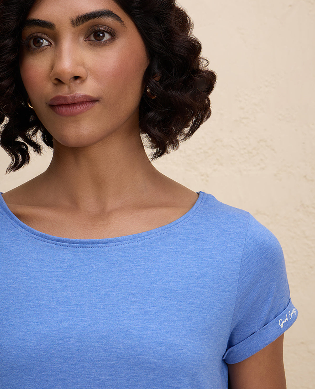 Our Apple Bottom Essential Tee is ideal for a chic, everyday style - whether you're grabbing brunch, coffee, or taking a stroll. Its curved bottom hem adds a flattering touch, giving you a slimming effect.