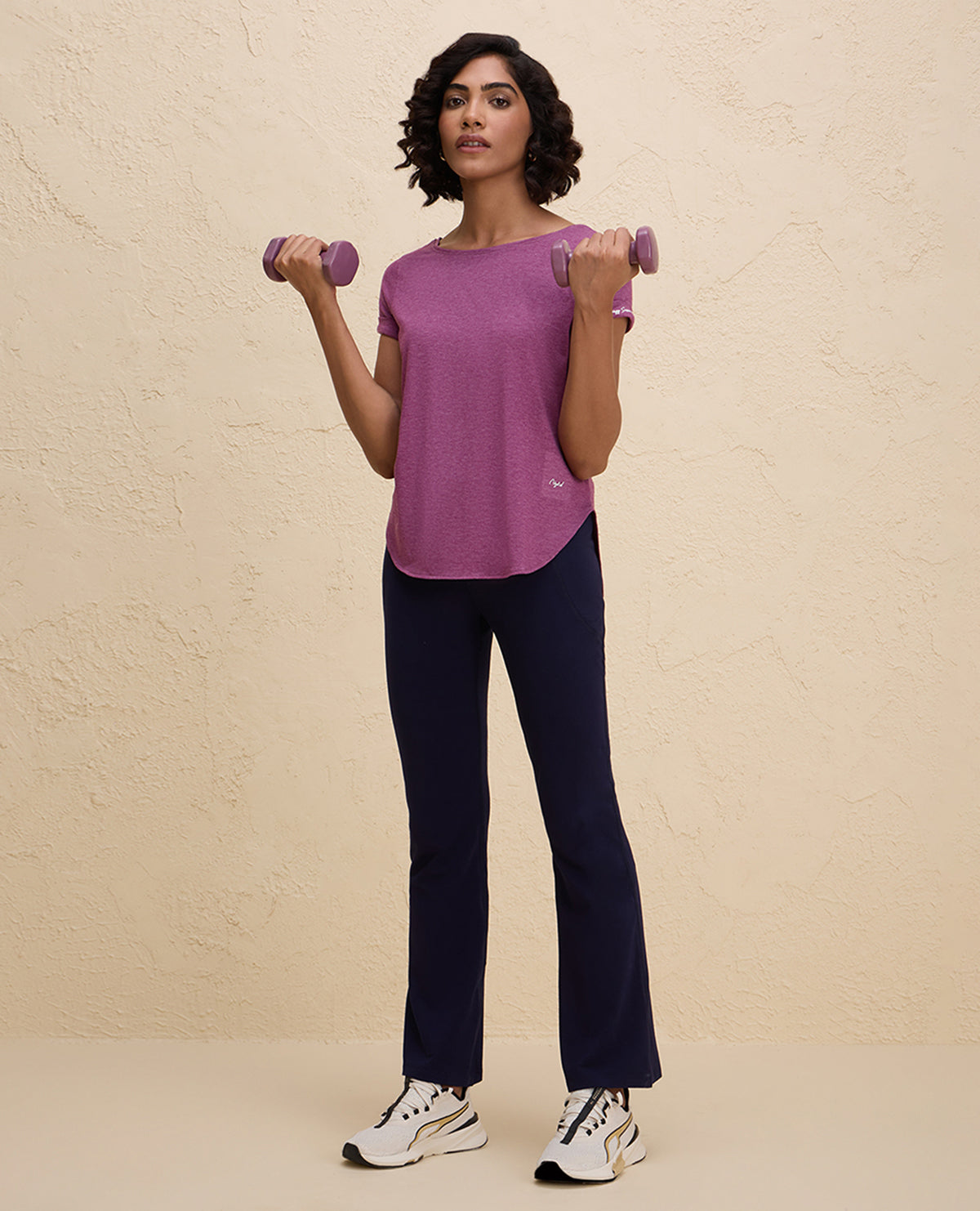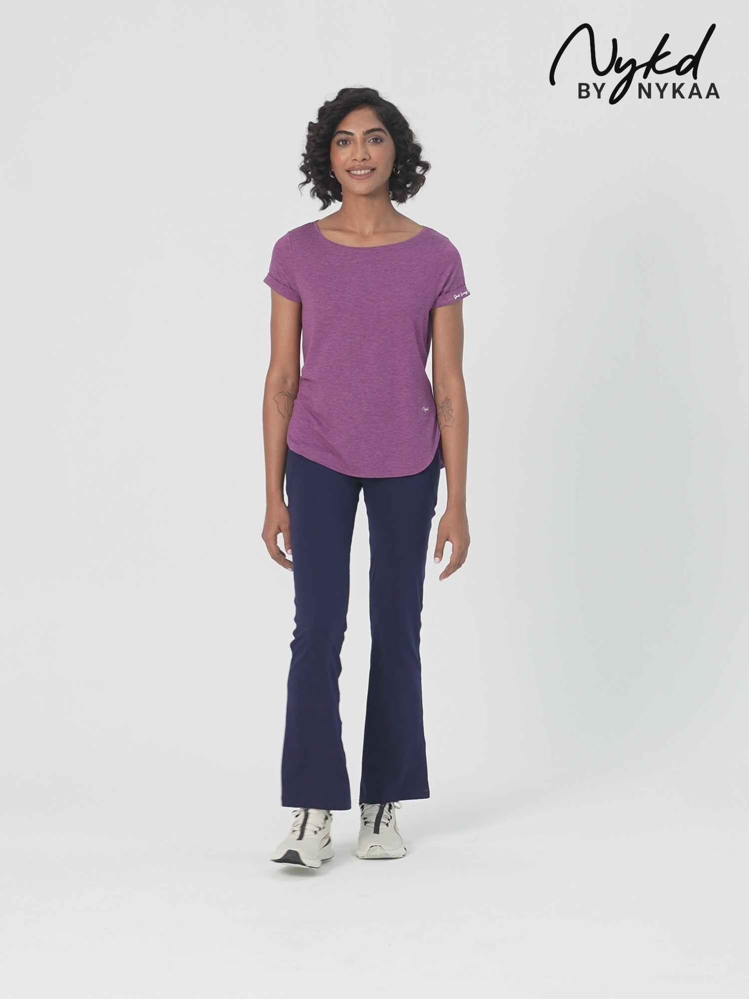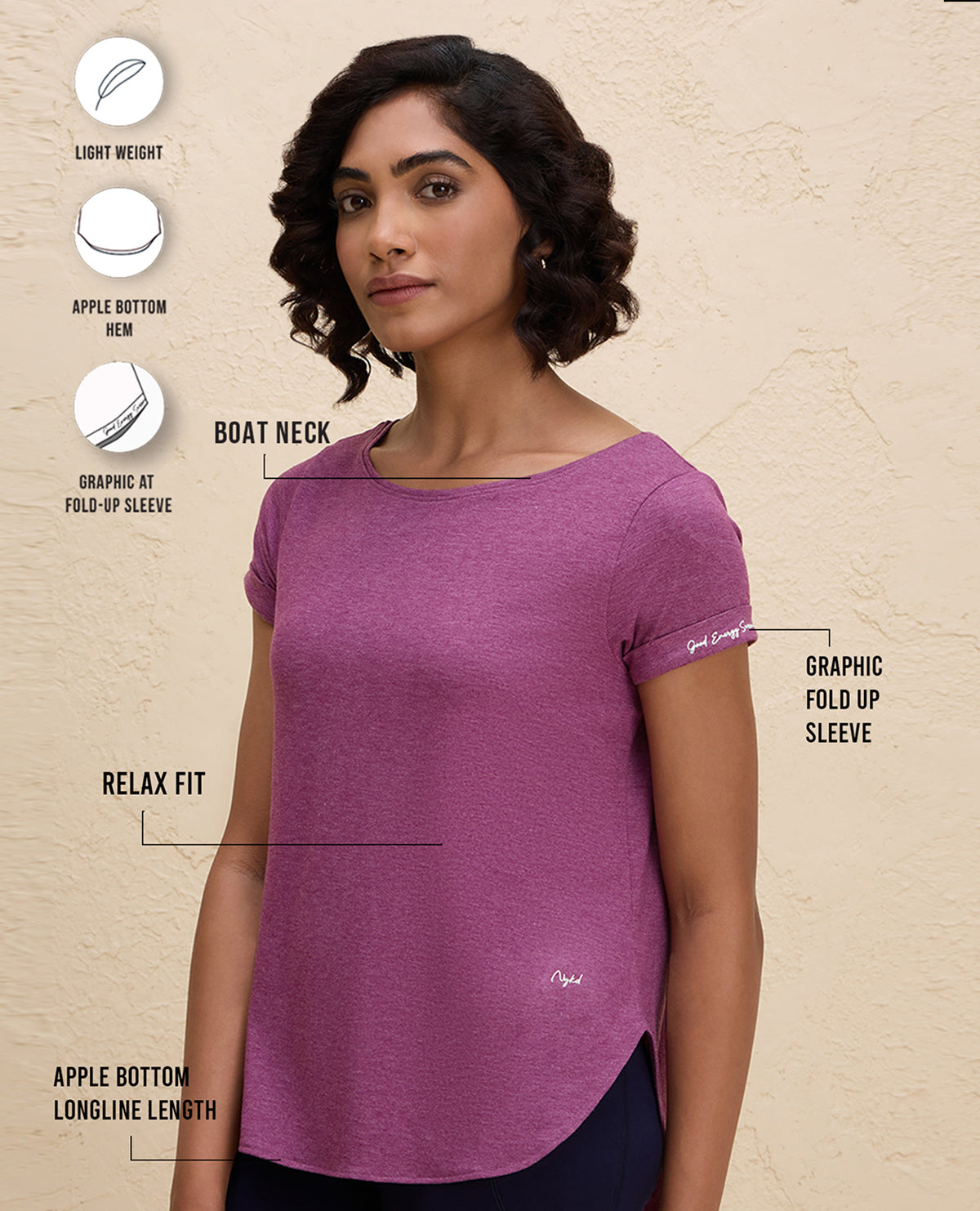 Nykd By Nykaa After Class Apple Bottom Flattering Longline Tee-NYAT272-Wine Melange