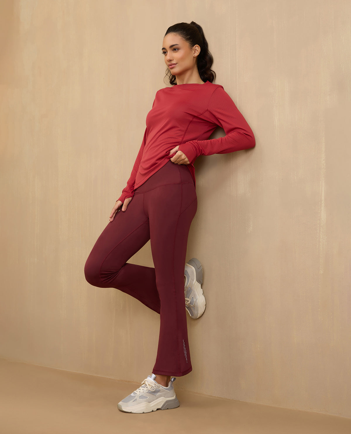 NYKD By Nykaa Back Twist Full sleeve Running Tee -NYK802-Maroon