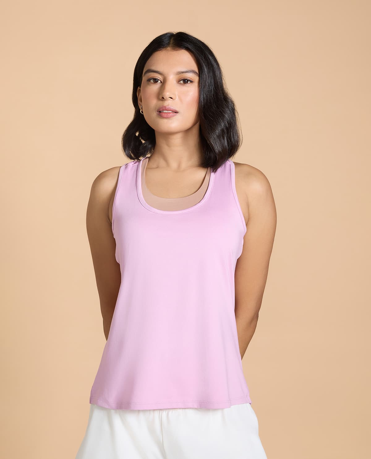 Designed in our soft and smooth Feather Feel fabric, this Tank Top has a barely-there feel. It's super lightweight, breathable, and durable.- With a back mesh detail, it provides a cooling effect and added breathability so you move sweat-free. - Designed with a round neck, sleeveless, and an A-line silhouette, it is airy and provides maximum ventilation.- It's sure to keep you fresh during and after your workouts!-Back cut detail- Back mesh panel - Regular fit- Round neck