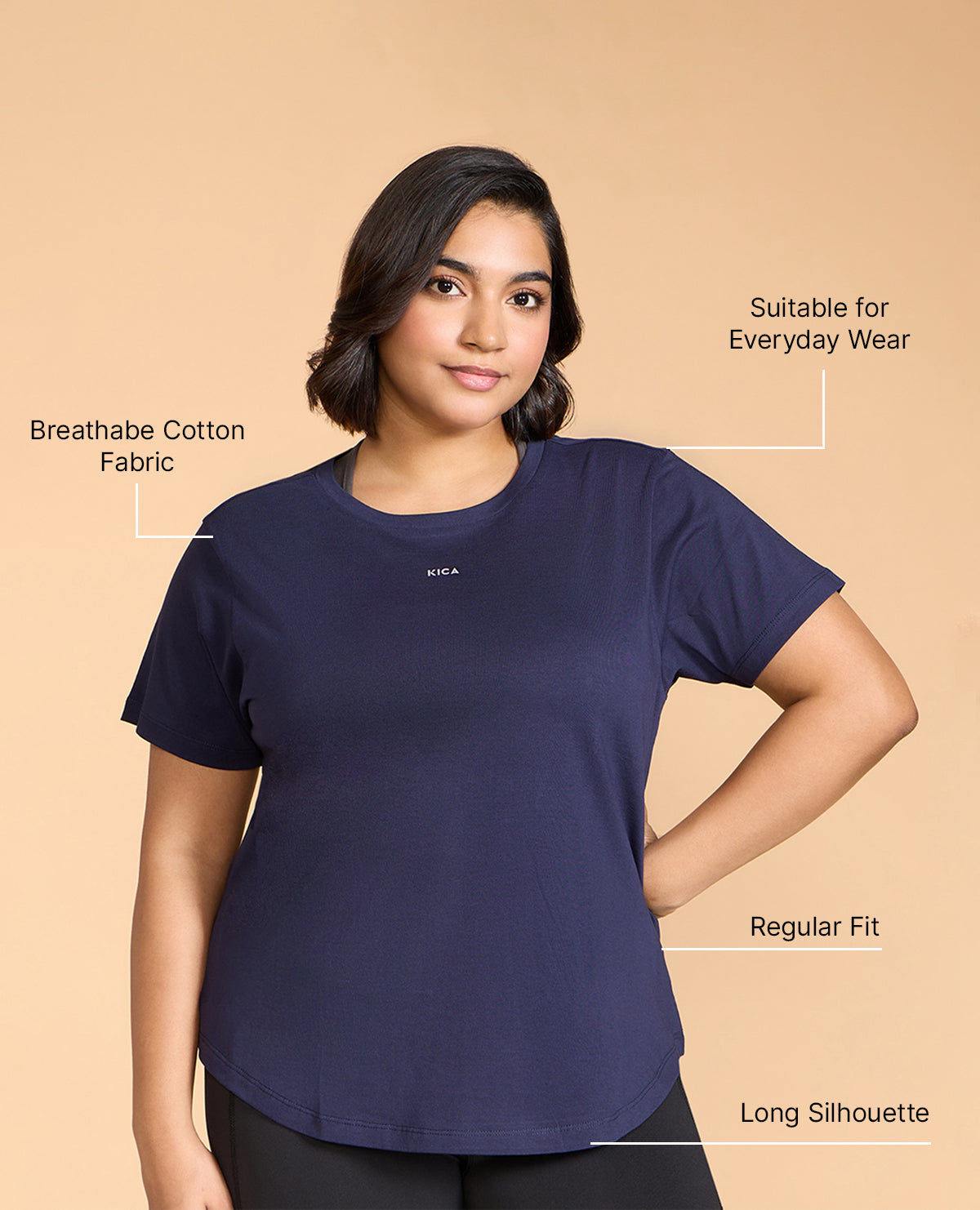 A definite must-have, this basic cotton top is soft and breathable. With a relaxed fit, half sleeves, and a curved hem, it suits all body types and goes well with our Straight Pants and Cotton Leggings.