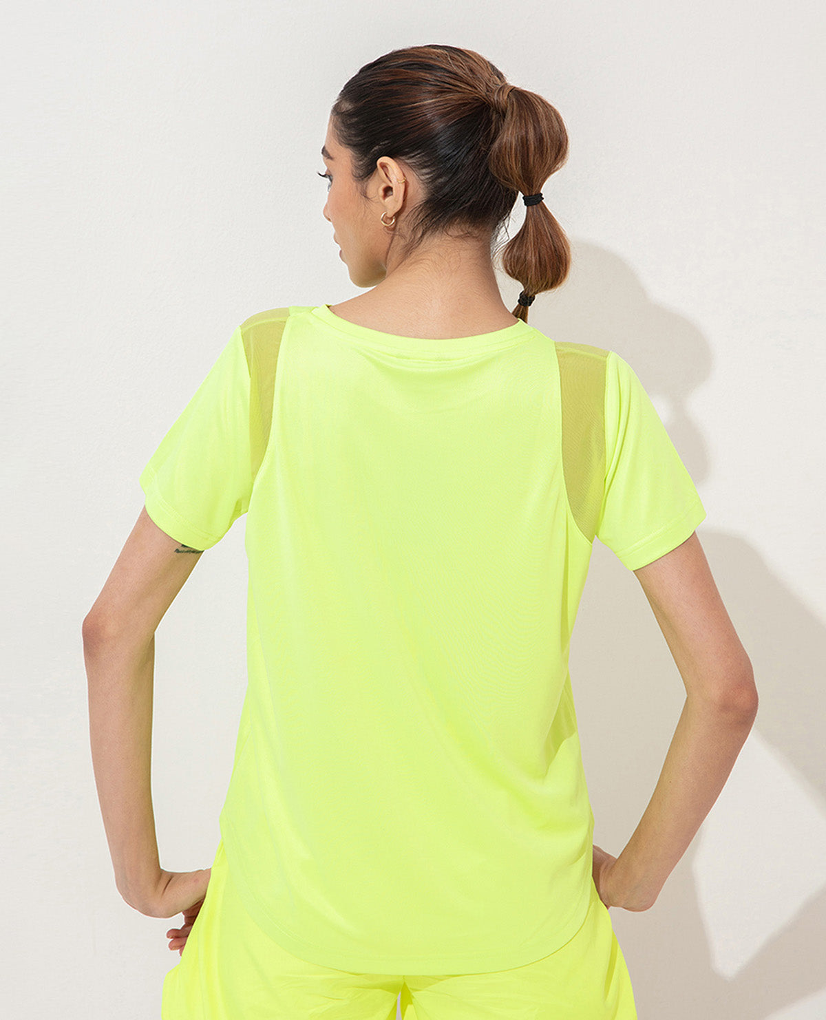 Crafted from high-performance fabrics, 100% Polyester for the body and 95% Polyester, 5% Spandex mesh side panels, this running top for women delivers comfort, stretch, and durability.