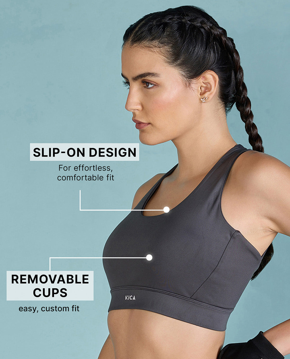 A: Kica sports bras are designed with features to ensure maximum support and comfort. Look for adjustable straps that allow you to customize the fit and find the right level of support for your body. Wide, padded shoulder straps help distribute weight and reduce pressure on your shoulders. Our sports bras also feature a supportive underband and encapsulated cups for excellent support and shape. Additionally, moisture-wicking and breathable fabrics are incorporated to keep you cool and dry during your workouts.