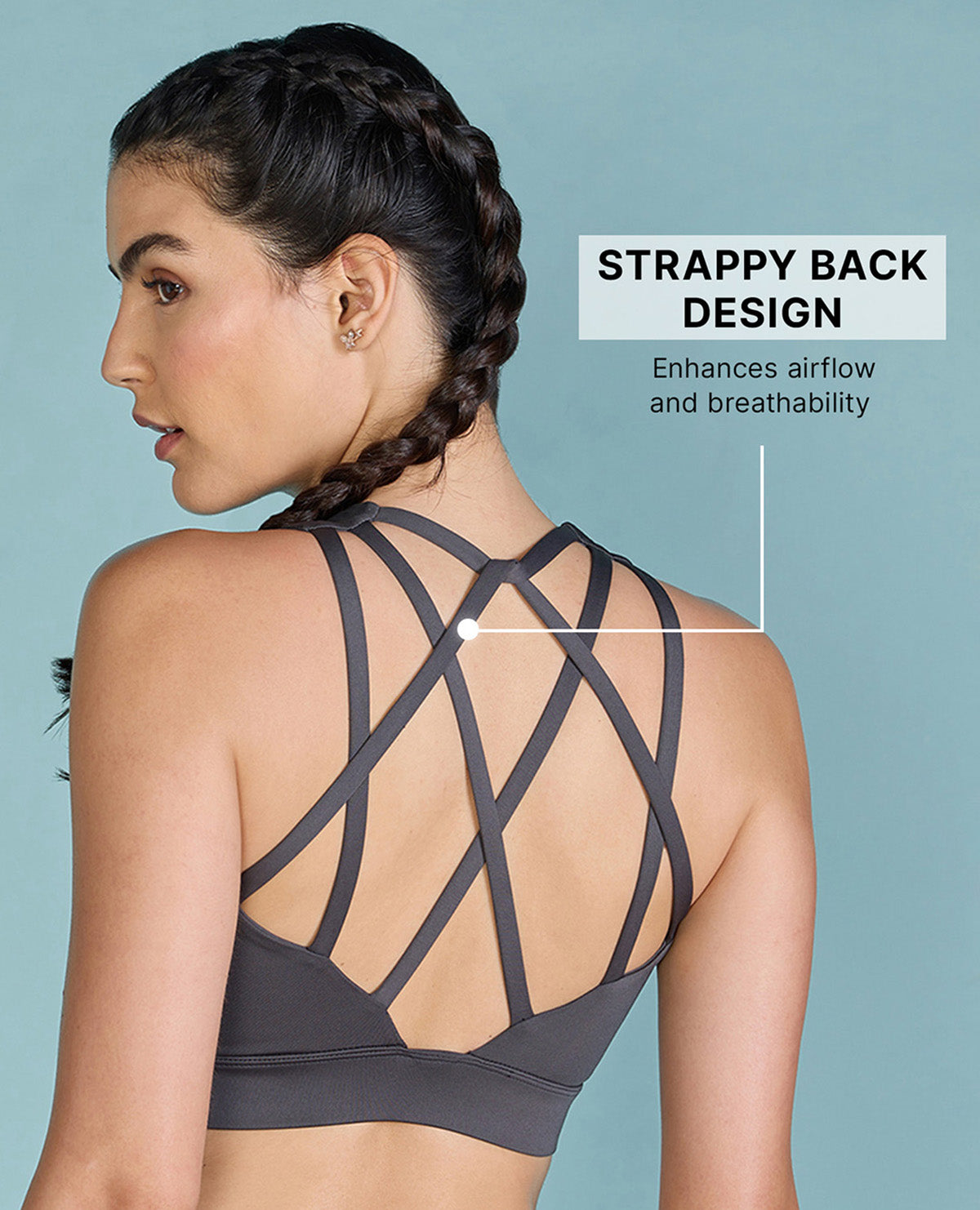 Kica Strappy Mid-Impact Sports Bra with Removable Pads Grey