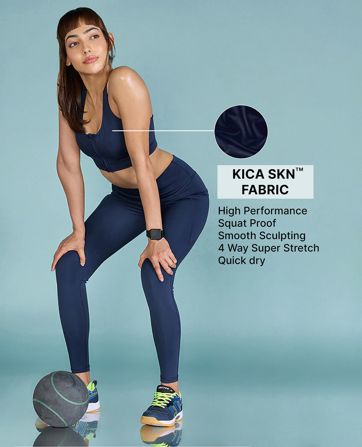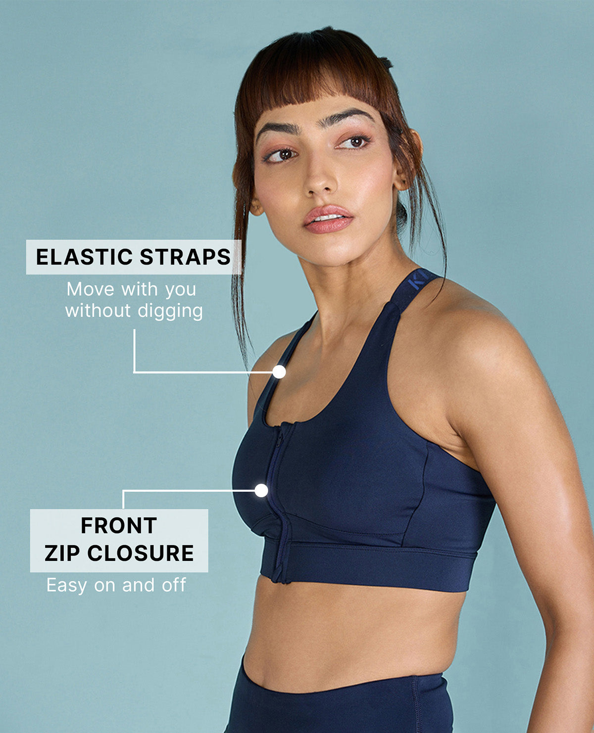 Kica Front Zip Sports Bra with Removable Pads Navy Blue