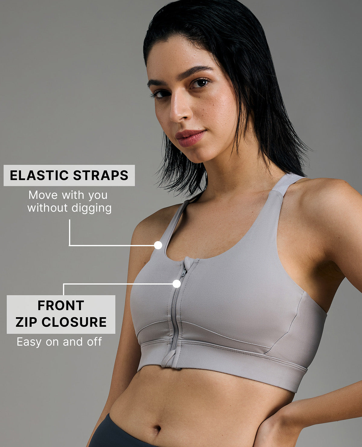 Kica Front Zip Sports Bra with Removable Pads Grey