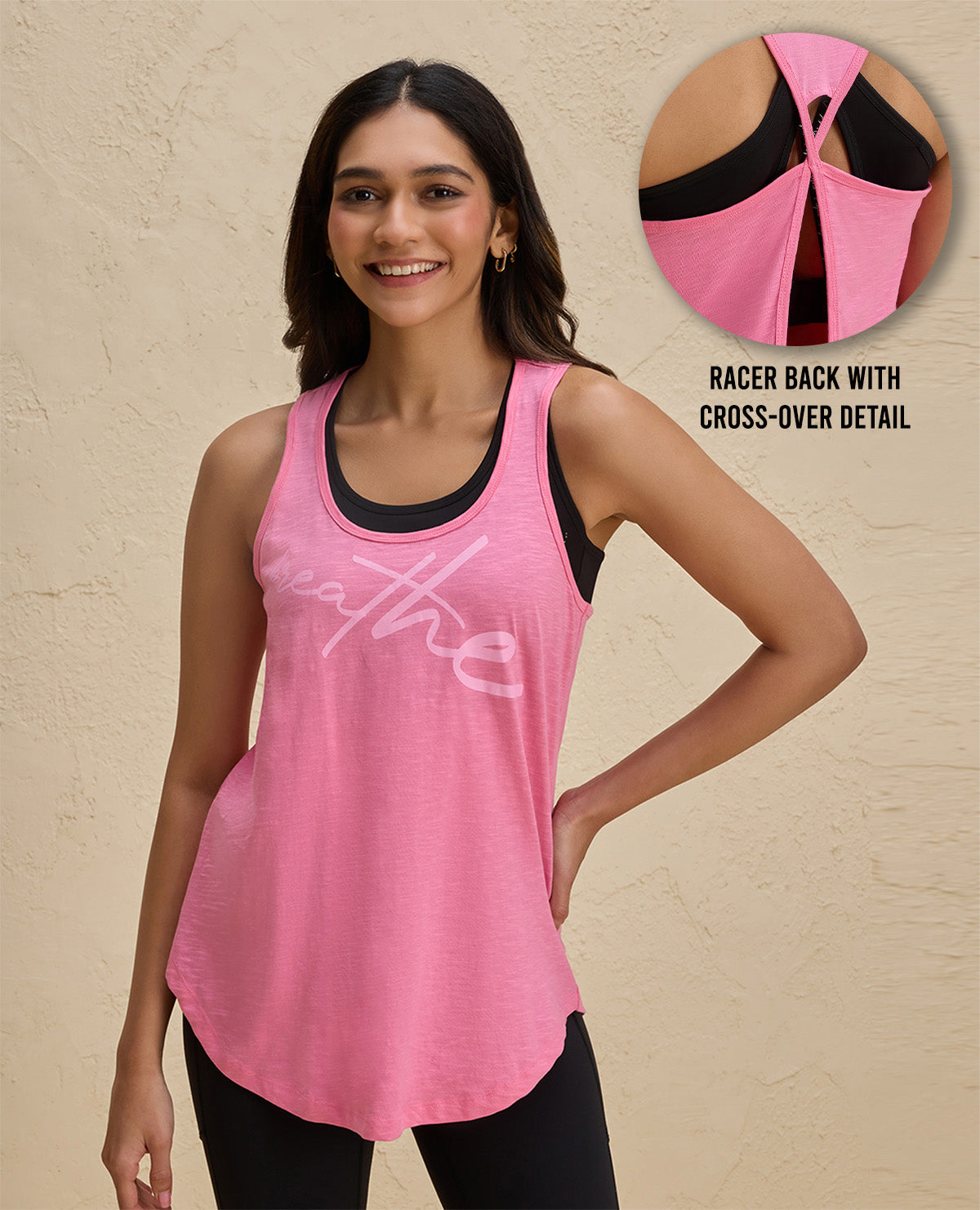 Nykd By Nykaa Summer Essential Cotton Slub Longline Tank -NYAT034-Pink