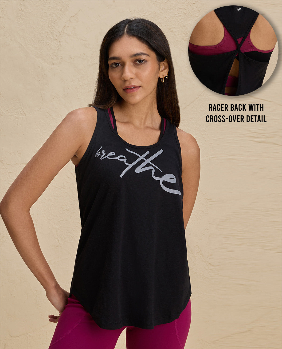Nykd By Nykaa Summer Essential Cotton Slub Longline Tank -NYAT034-Jet Black